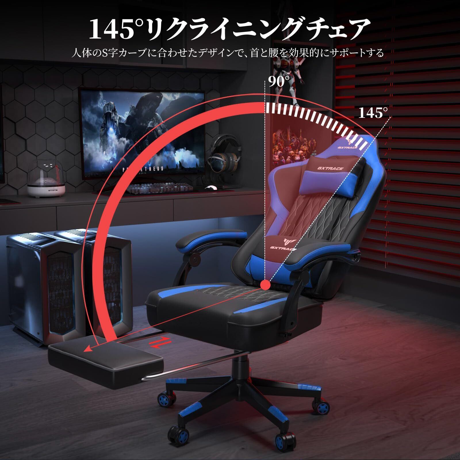 ゲーミングチェア オフィスチェアオットマン付き 幅広座面 145°リクライニング 快適デスクチェア 在宅ワーク&ゲーム用 PCチェア 収納便利