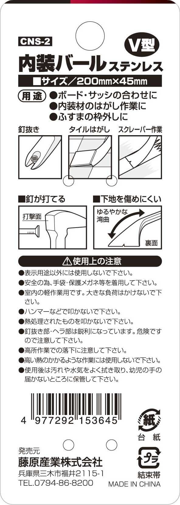 SK11(エスケー11) 内装バール ステンレス V型 200mm CNS-2