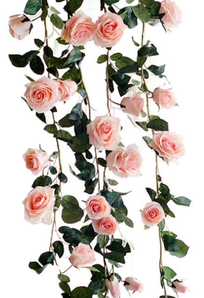 Kugusa バラ ガーランド 造花 インテリア シルクフラワー スワッグ 装飾 パーティー (ピンク) 1本