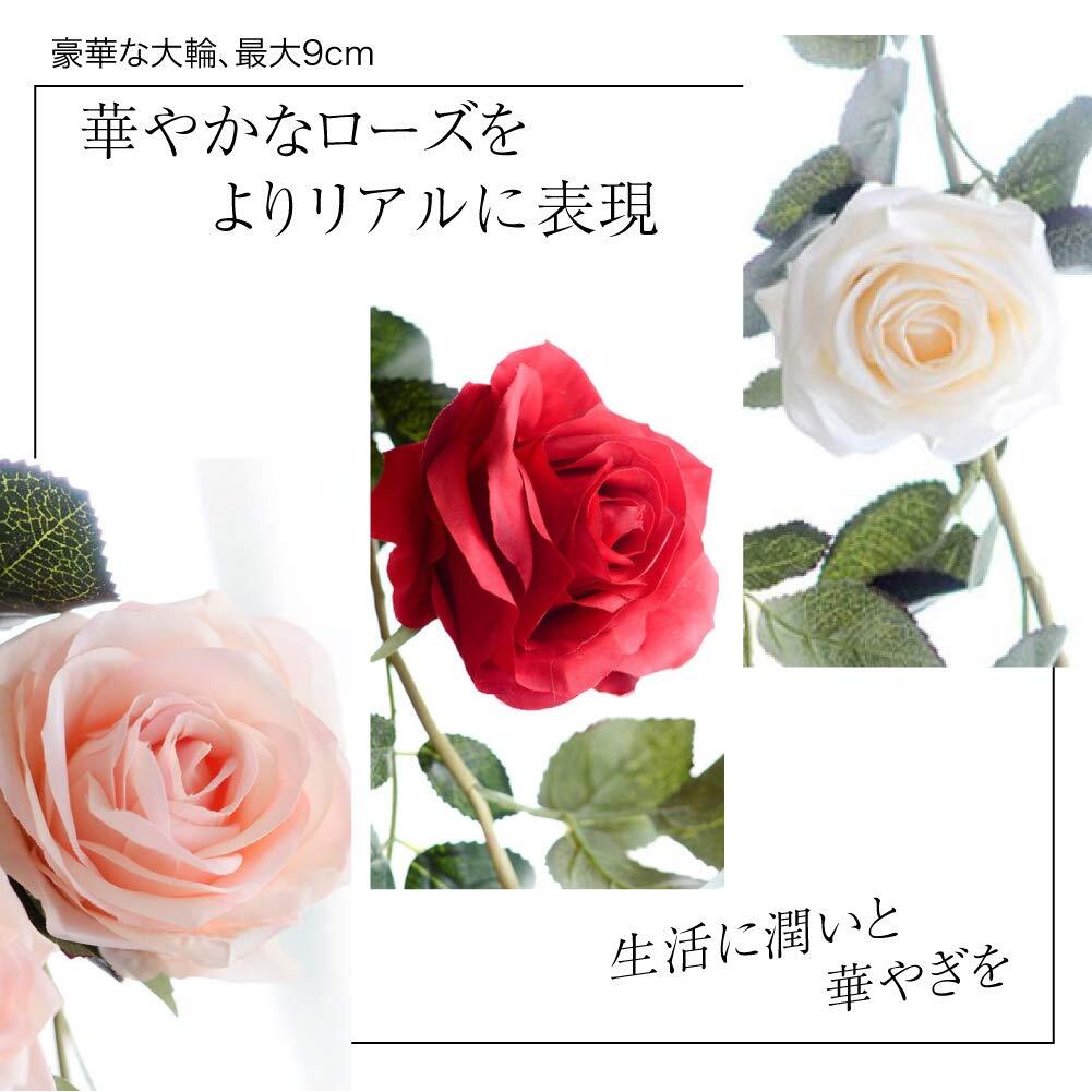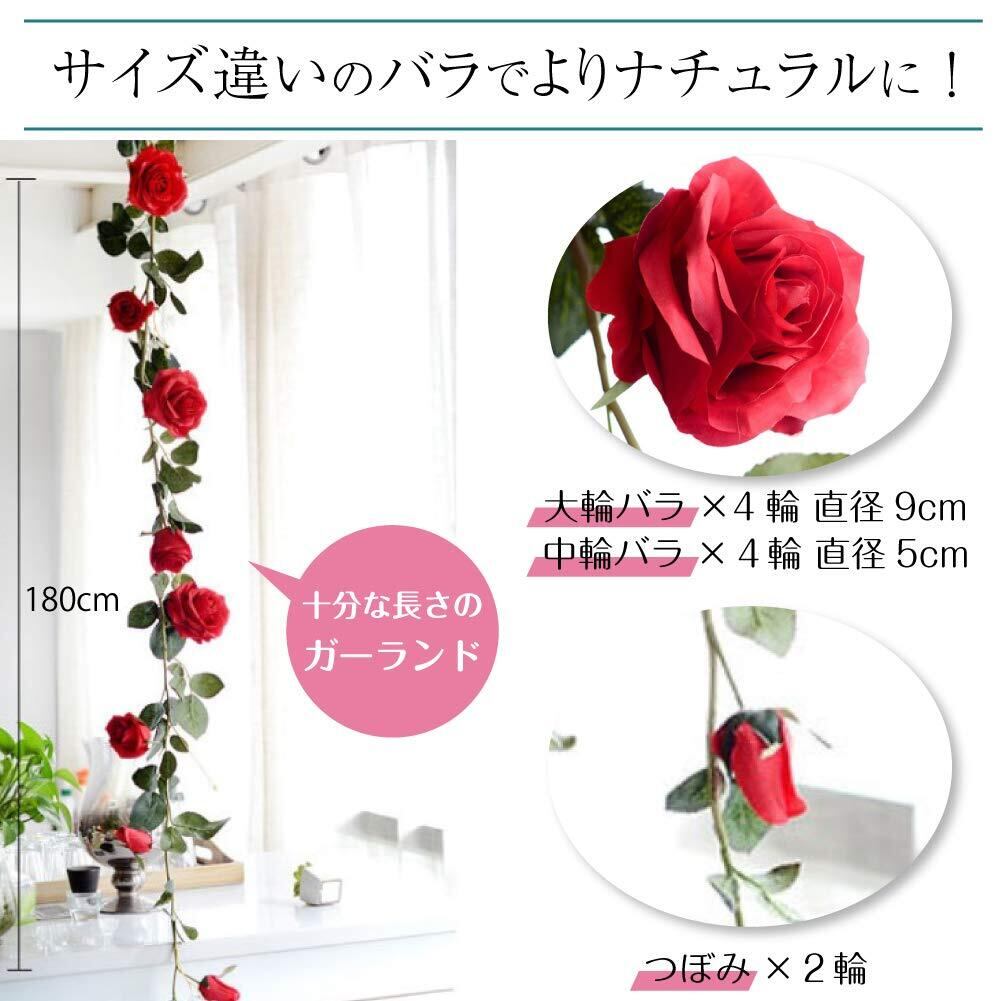 サイズ:全長 1.8m バラ(直径9cm 4輪、直径5cm 4輪、つぼみ 2輪) 素材:シルクフラワー(化学繊維) 重さ:165g