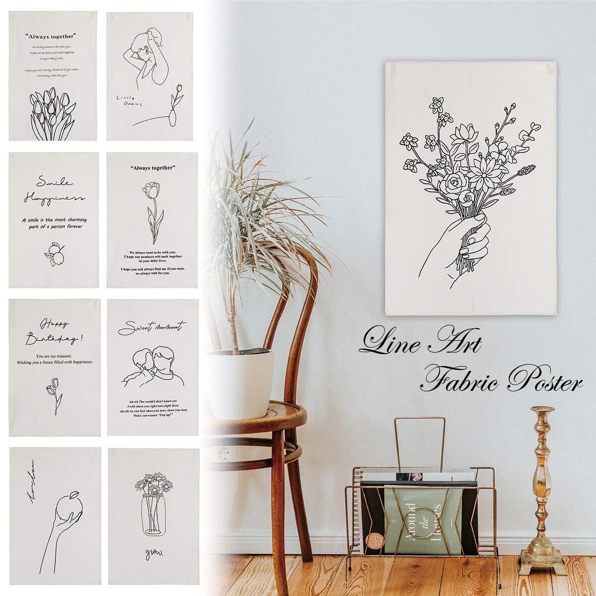 ファブリックポスター タペストリー 北欧 線画 おしゃれ ナチュラル シンプル モダン アート 癒し 部屋 飾り付け 小物 インテリア 布 (デザイン4)