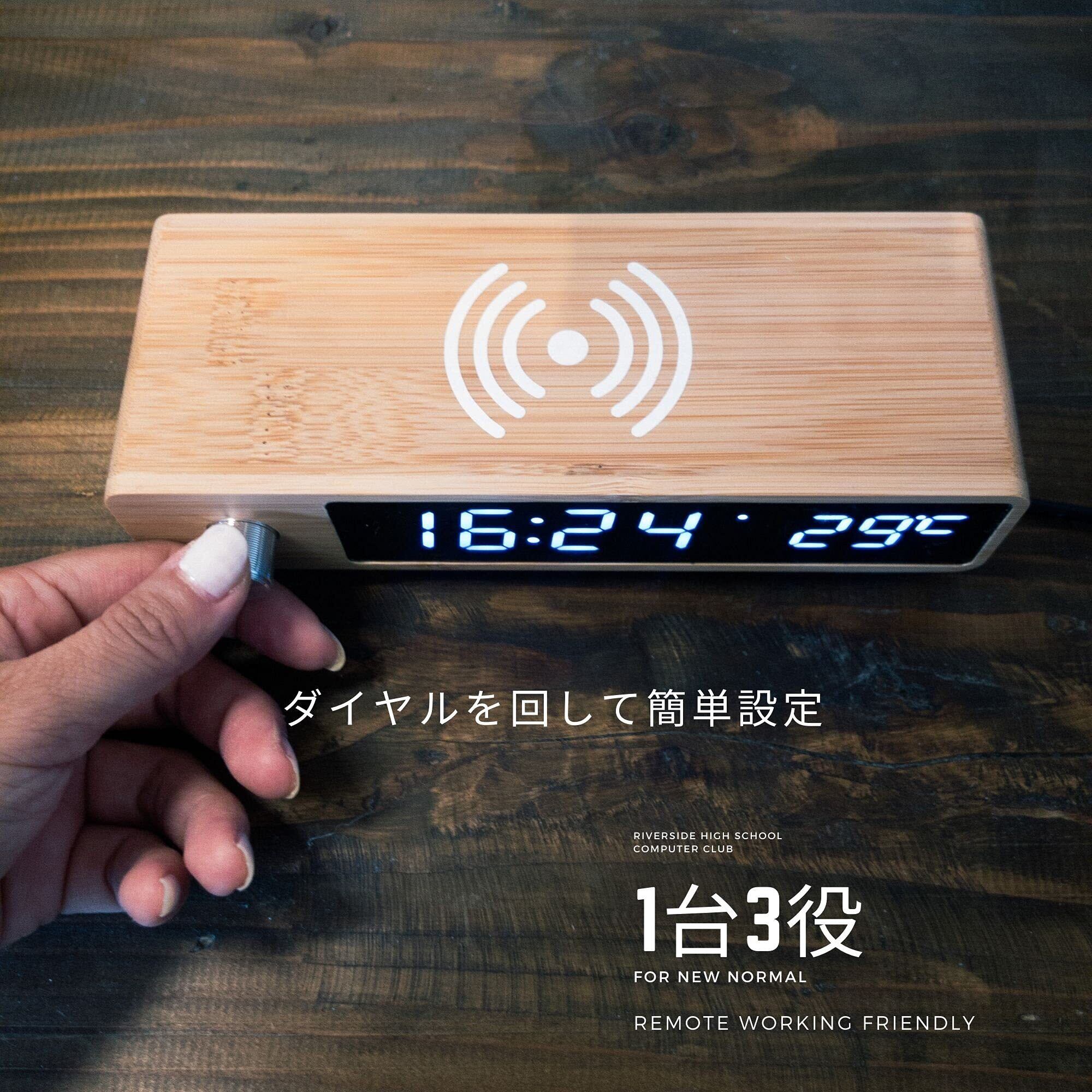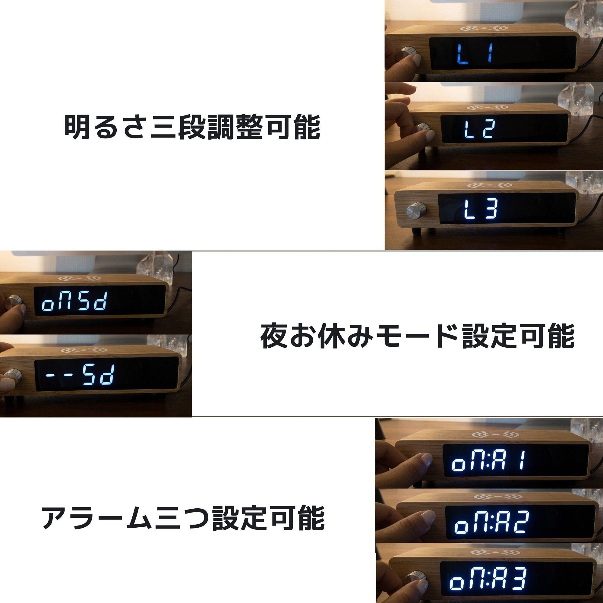 インテリア 目覚まし時計 おしゃれ 置き時計 デジタル時計 和風 LED Qi 対応 スマホワイヤレス充電 iPhone8以上対応 卓上 クロック スタイリッシュ 環境に優しい素材 (人気天然竹製)