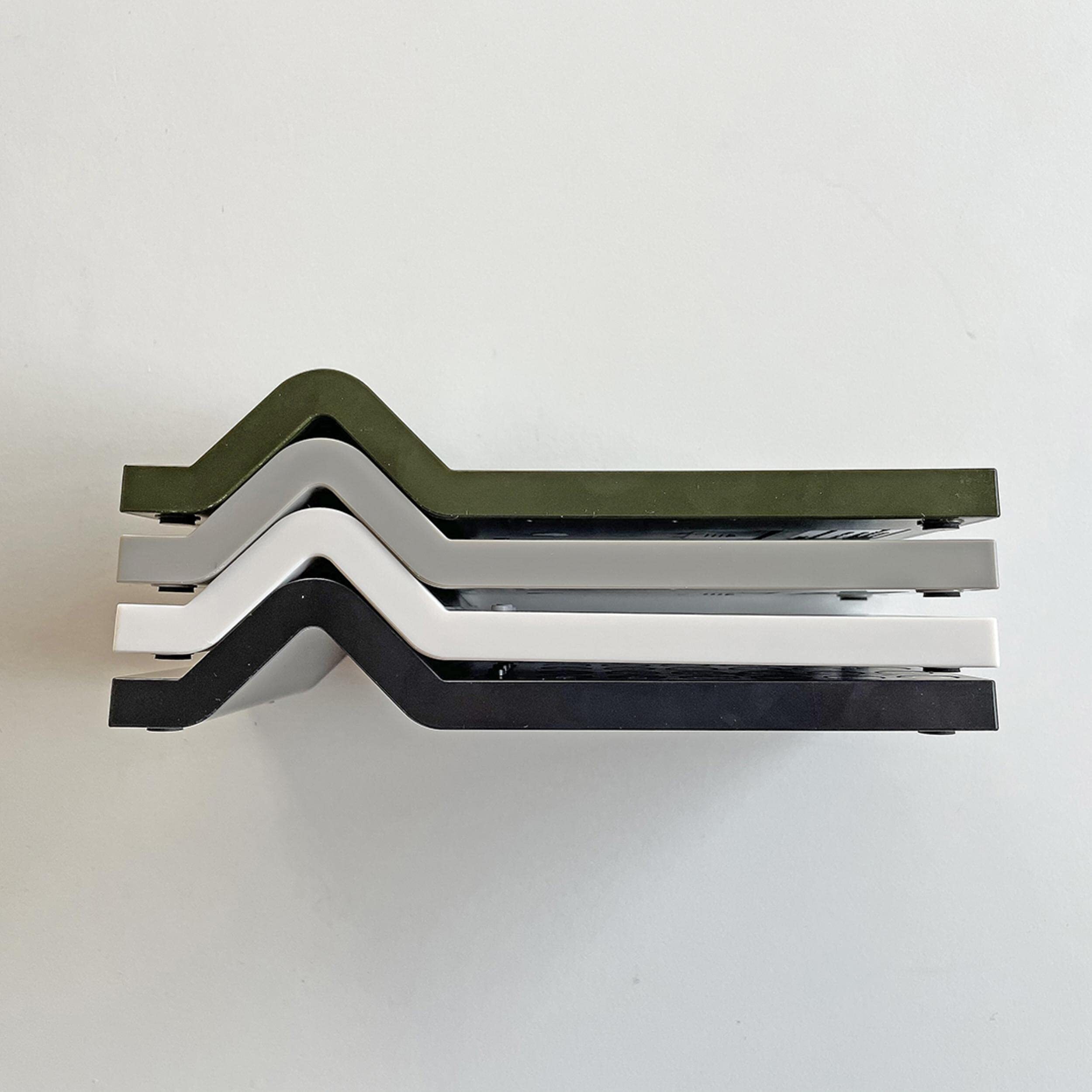 電卓を挟んだ両側から計算や日付/時間が見えるダブル・ディスプレイ仕様。シャクトリムシを思わせる、シンプルながらどこかユーモラスなフォルムは、対面する人と人との間の空気を優しく演出します。