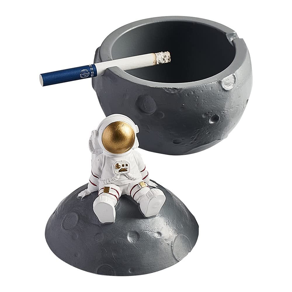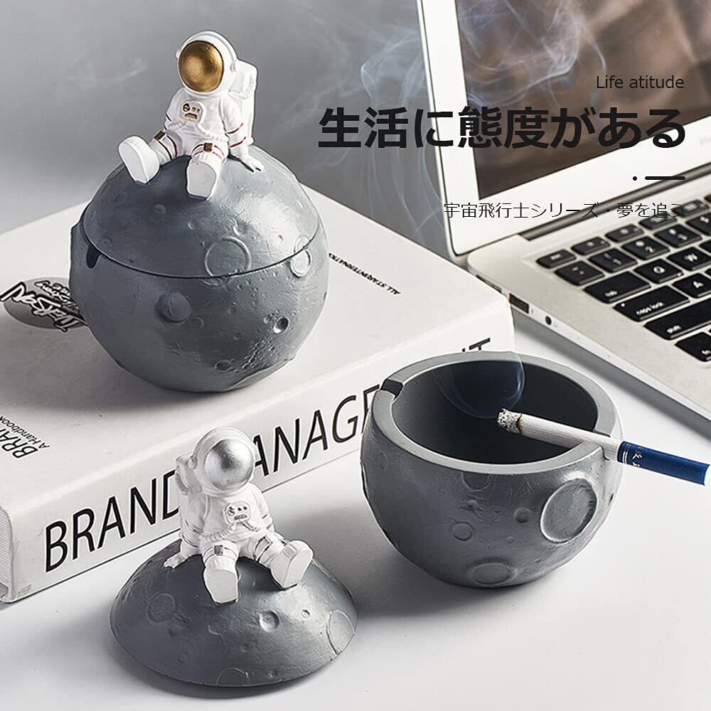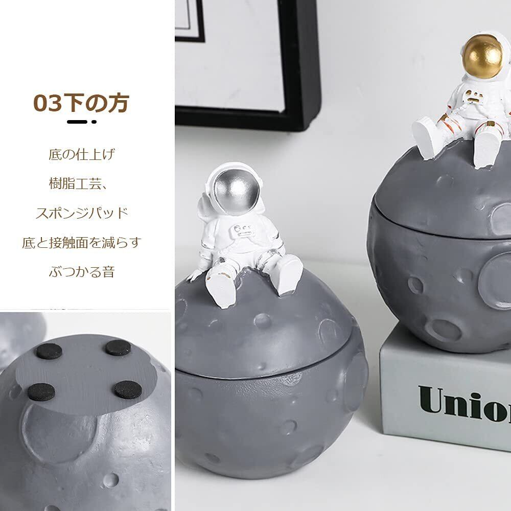 CMD 灰皿 卓上 北欧スタイル 月 宇宙飛行士 ふた付き 樹脂 はいざら ユニーク おしゃれ 防風 密閉 大容量 洗いやすい リビングオフィス 家庭用 インテリア (ゴールド)