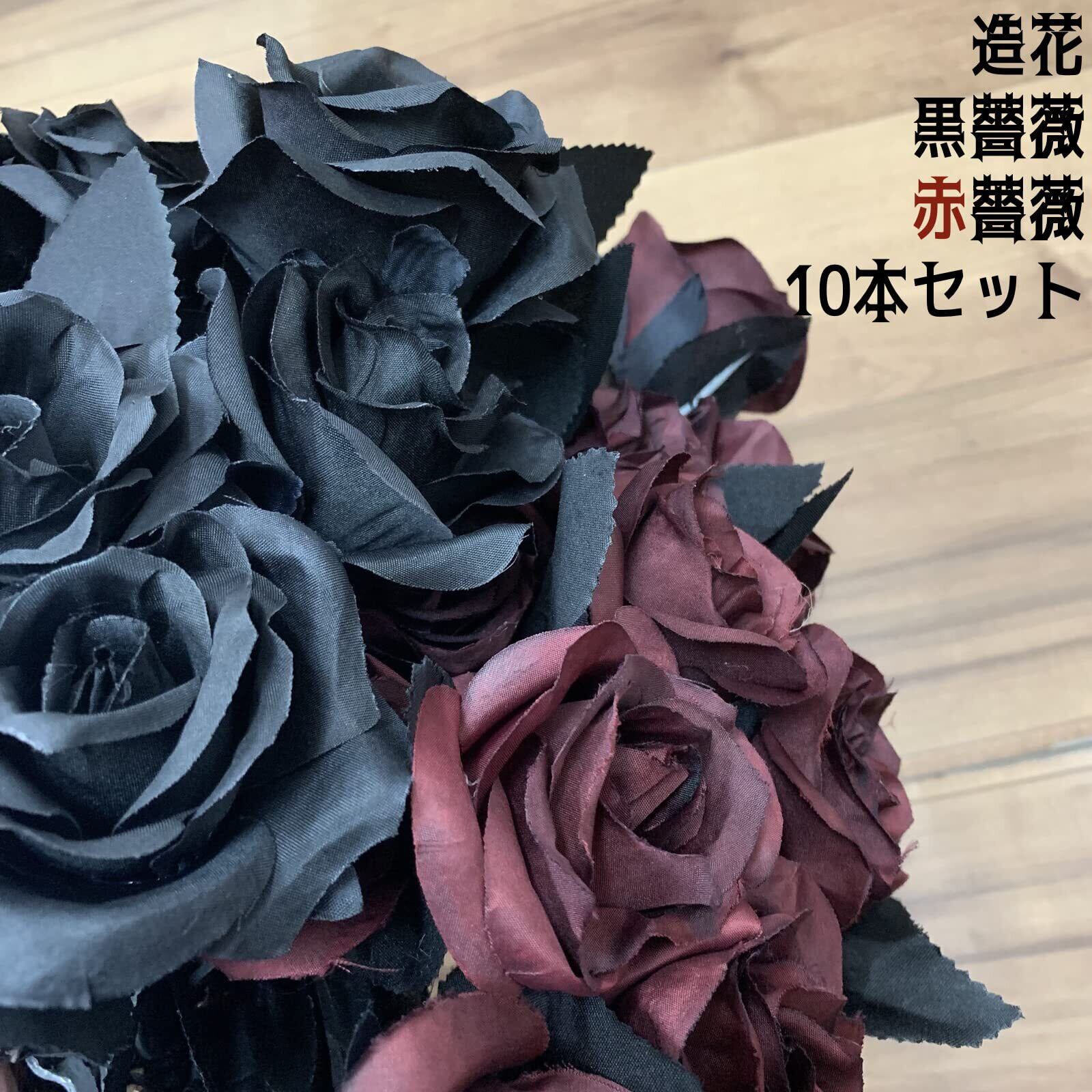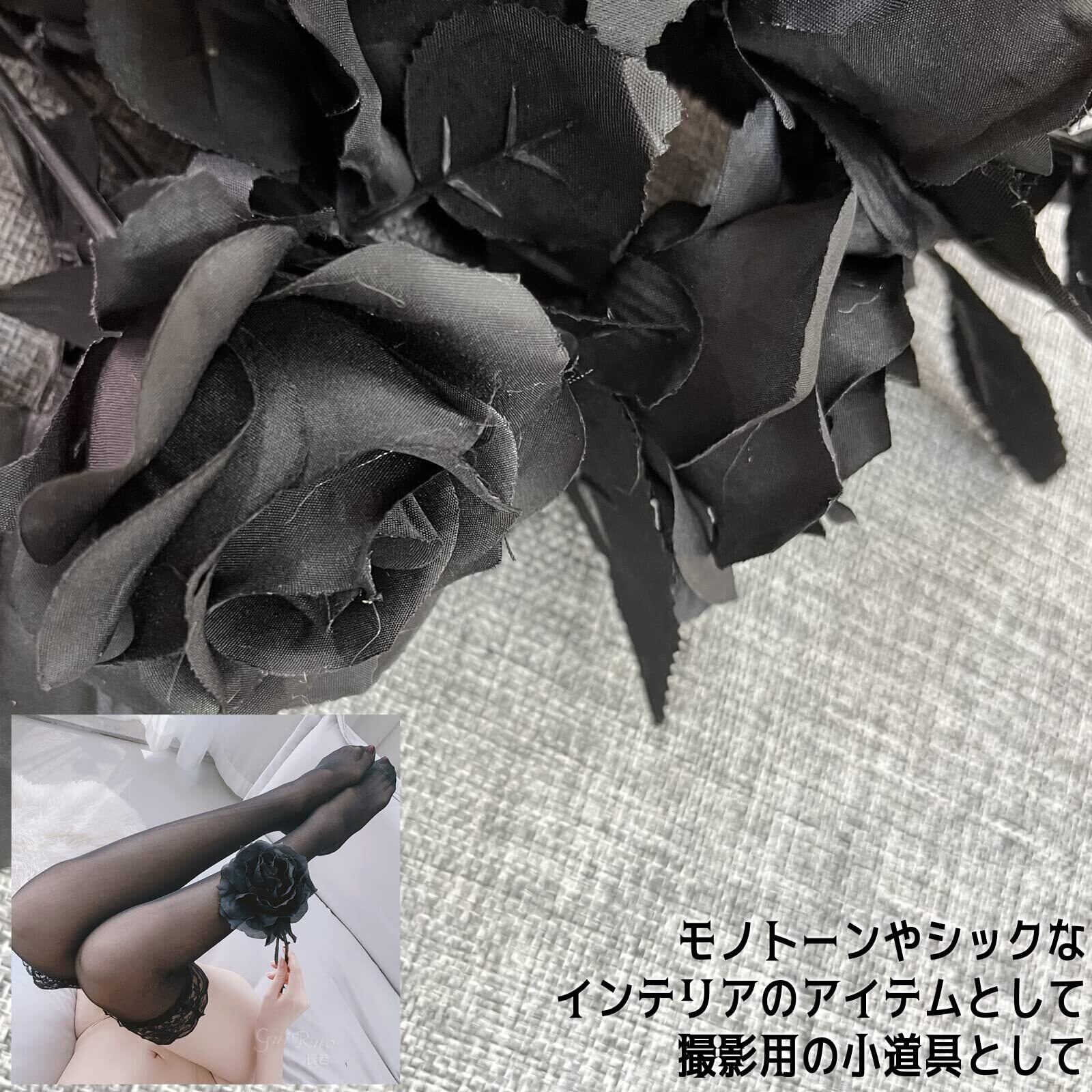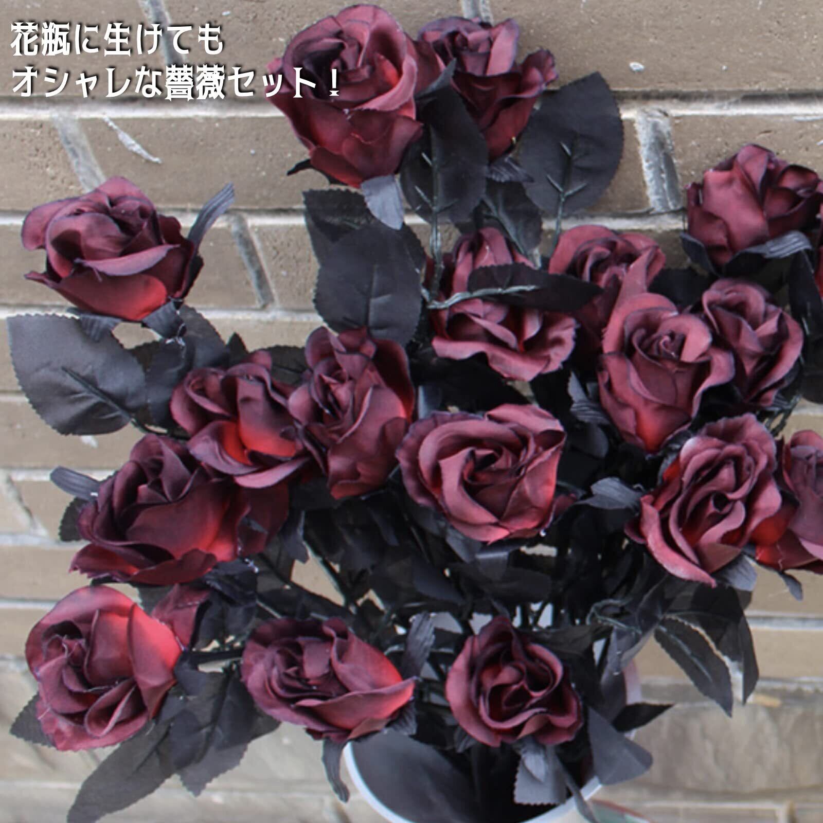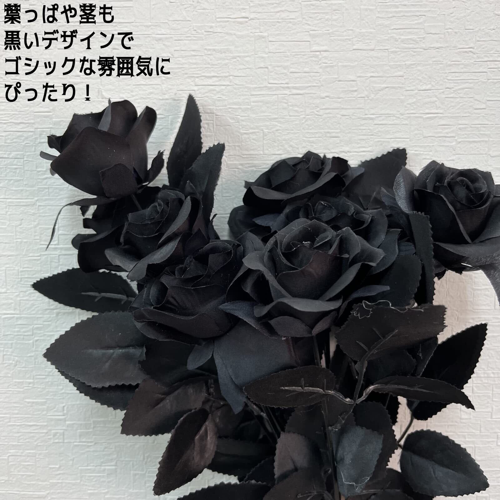 ゴシックやダークな雰囲気にぴったりな色合いの造花薔薇セットで、撮影用の小道具からシックやモノトーン調のインテリアのアイテムとしてもぴったり。