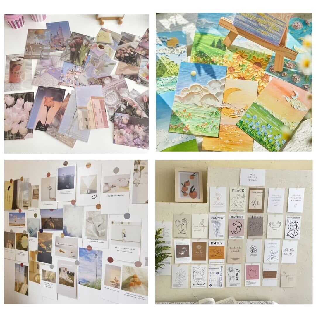 【飾るだけで印象がぐっと良くなります】葉書サイズなので、軽くて小さく気軽に取り入れられます。壁に貼ったり、留めたり、吊るしたり、棚やテーブルの上を飾ったりするだけで一気に雰囲気が変わります。