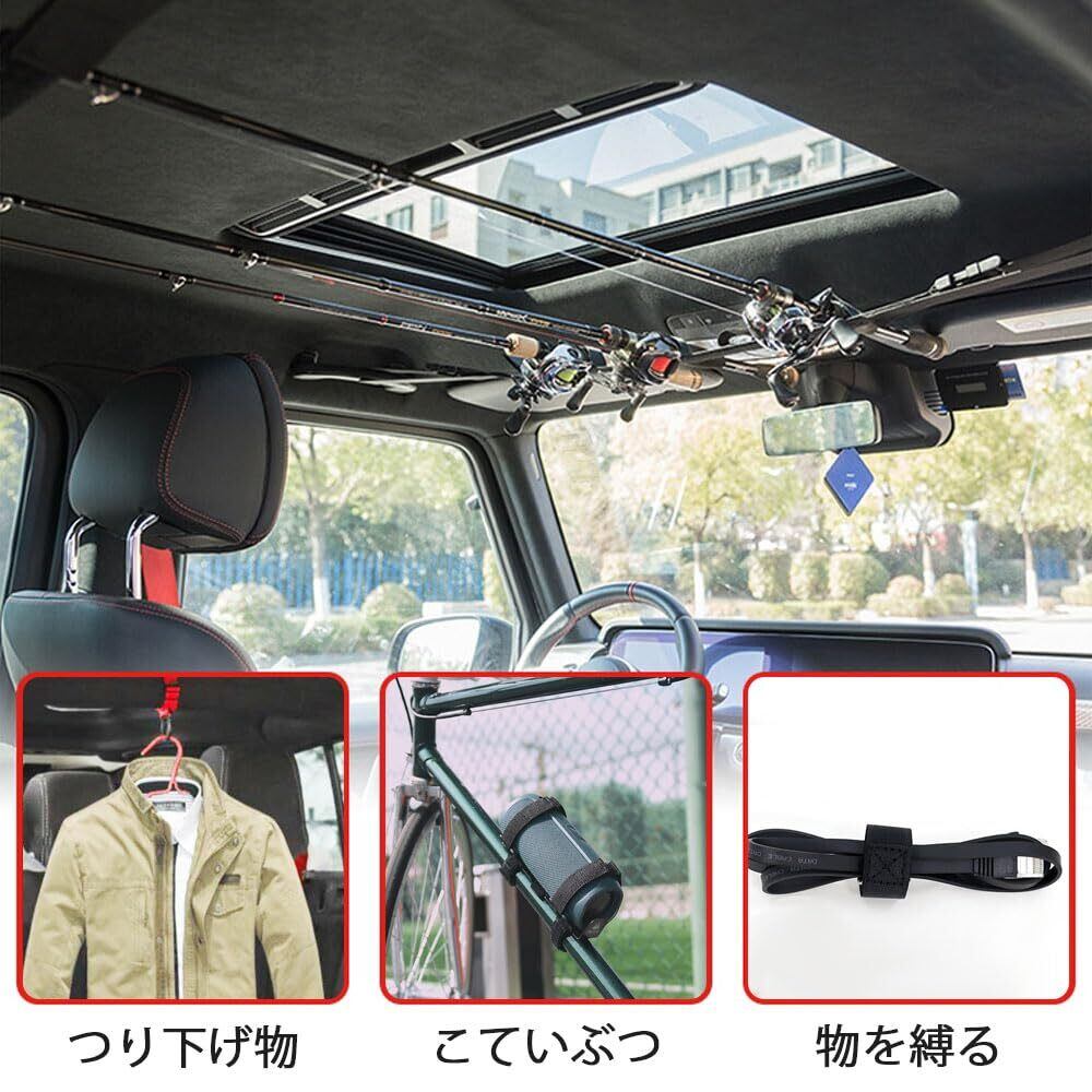 【適用シーン】車内での使用に最適で、車載釣竿や車載物干し竿の固定などが可能であり、その他の場面でも汎用可能である。