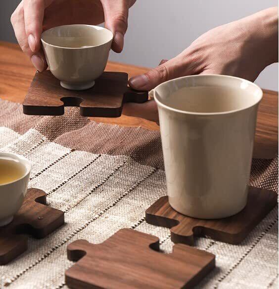 パズル形をした可愛い木製コースター4枚セットです