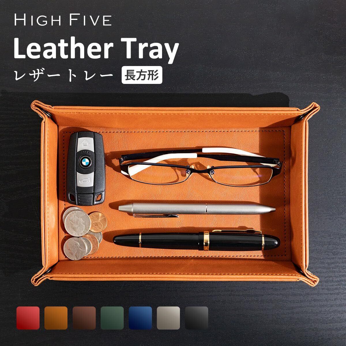 [HIGH FIVE] 長方形 レザートレー トレイ 小物入れ アクセサリー リモコン 鍵 腕時計 指輪 収納ボックス グレージュ