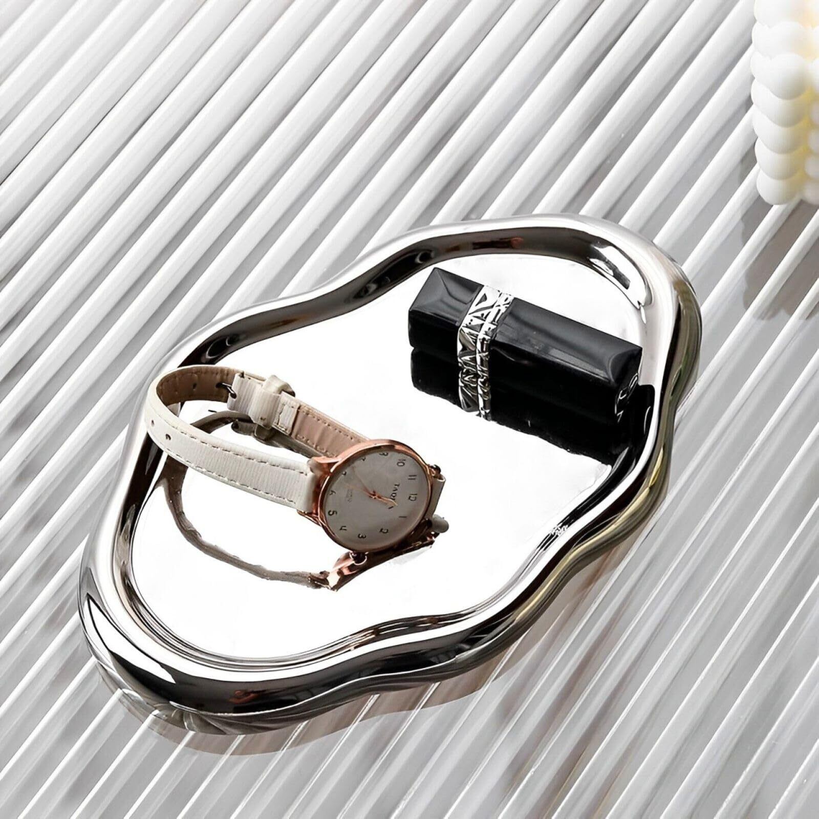【特価セール】[ハルジオ] アクセサリートレイ ジュエリートレイ アクセサリー置き アクセサリー ジュエリー トレイ プレート ウェーブ おしゃれ 可愛い 北欧 北欧雑貨 小物 小物入れ 小物置き 鍵置き 鍵 指輪 撮影 韓国 韓国雑貨 トレー ニュアンス 白 銀 (シルバー) | paghag