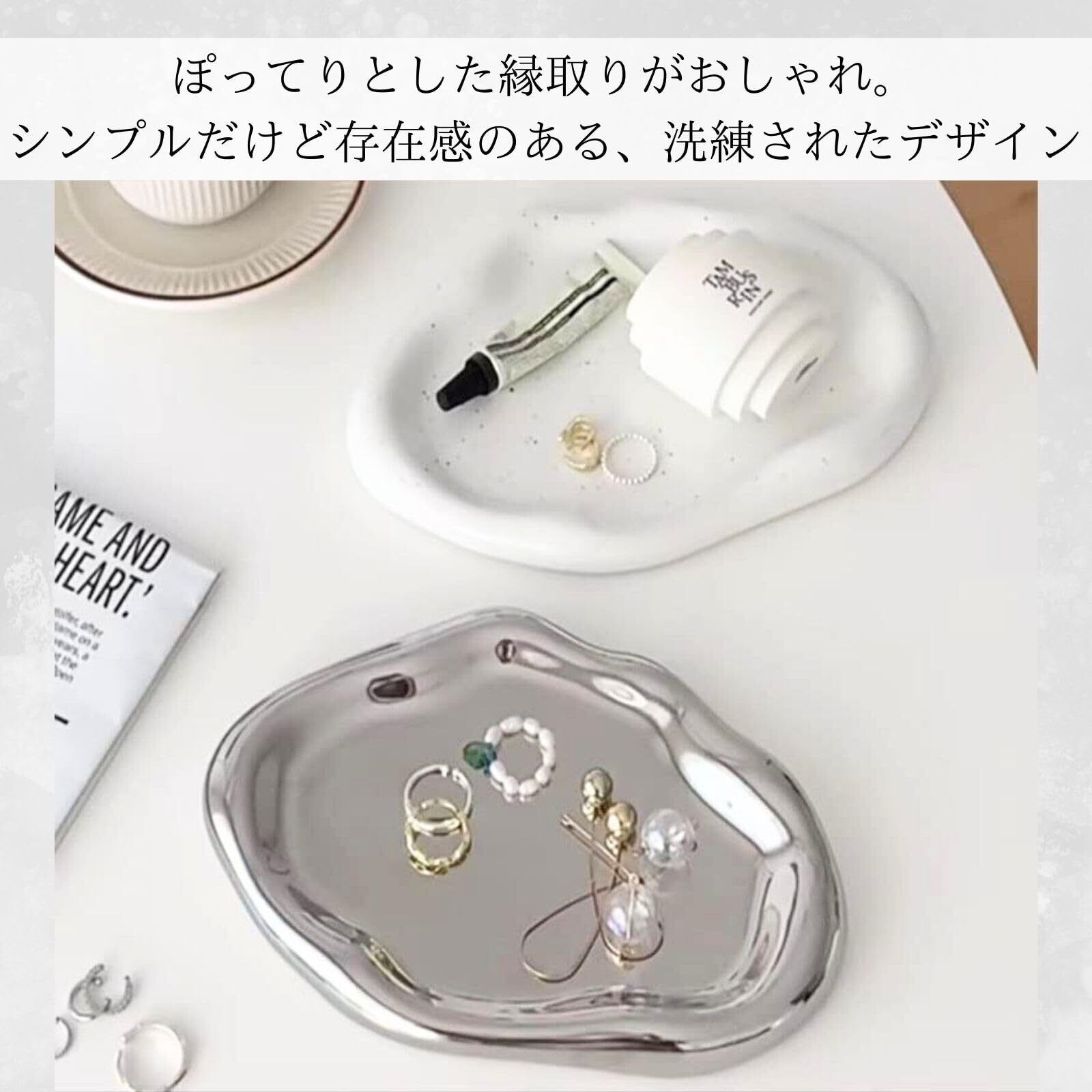 [ハルジオ] アクセサリートレイ ジュエリートレイ アクセサリー置き アクセサリー ジュエリー トレイ プレート ウェーブ おしゃれ 可愛い 北欧 北欧雑貨 小物 小物入れ 小物置き 鍵置き 鍵 指輪 撮影 韓国 韓国雑貨 トレー ニュアンス 白 銀 (シルバー)