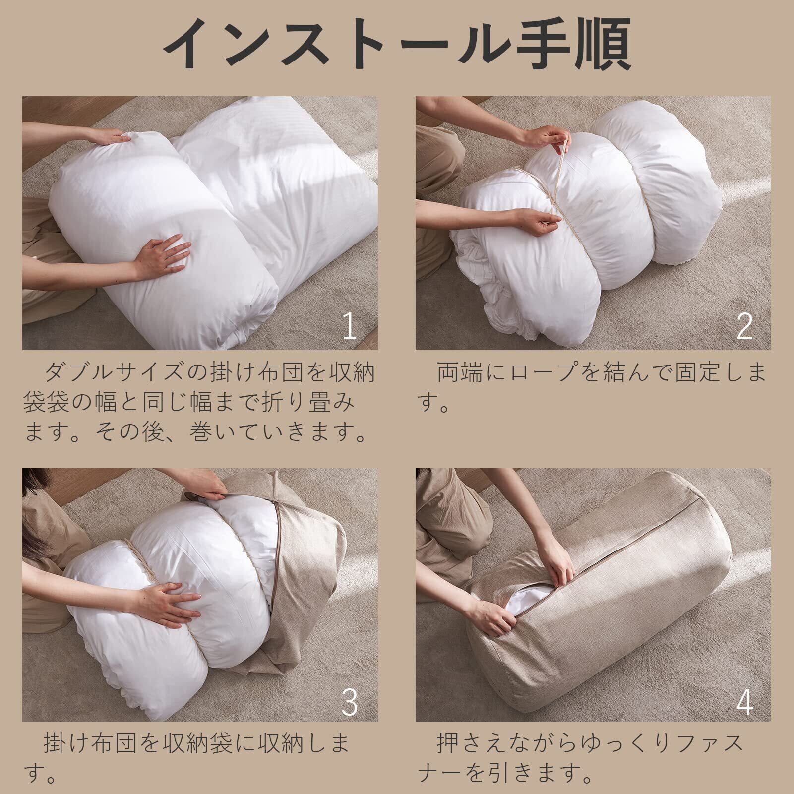【クッションになる布団収納ケース】収納もインテリアも妥協しない快適な空間づくり。インテリア性の高い生地に馴染みの良いナチュラルな色合いは、来客時に置きっぱなしでも生活感なく空間に溶け込みます。布団収納ですが、「収納」と「インテリア」どちらも妥協せずお使いいただけます。