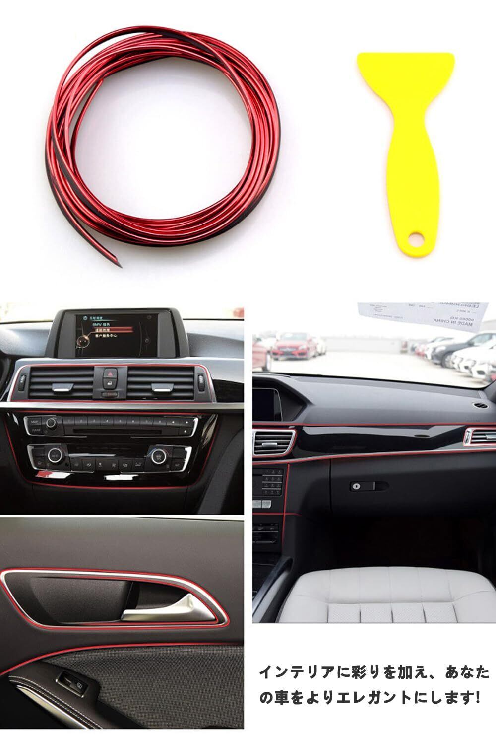 harukita 車カラーモール 隙間に差し込む インテリアスリムモール 車内モール カーインテリアモール 色が選べる 隙間に挟み込みタイプ 取付用ヘラ付属 長さ5m レッド