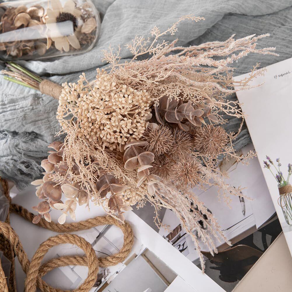 WillingYou ドライフラワー ブーケ 壁掛け 花束 ドライフラワー 風 造花 フェイク 前撮り 玄関 インテリア テーブル 装飾 花 プレゼント 1束入り ベージュ