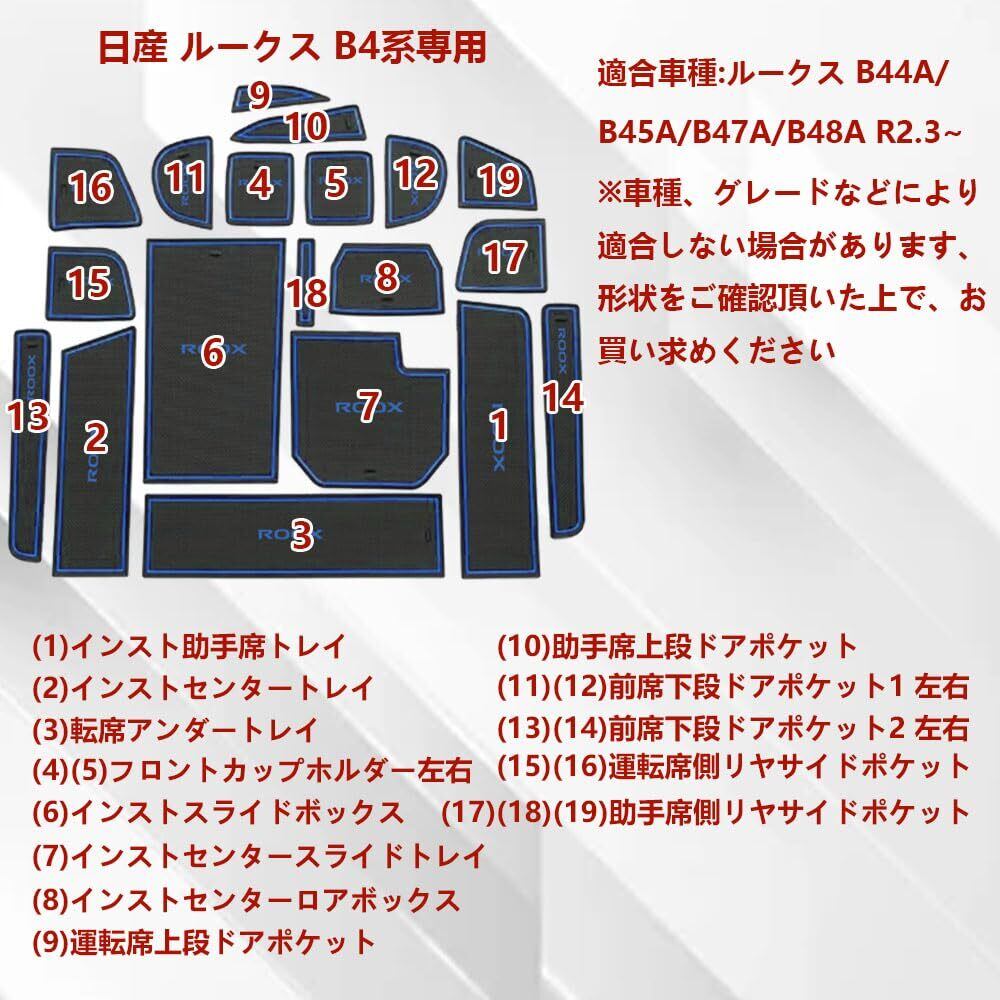 【在庫セール】LEXLEYS 日産 ルークス 3代目 B44A B45A B47A B48A R2.3~ ドアスロットマット 専用インテリアラバーマットドアポケットマット アクセサリー ROOX コンソールマット 19枚 防キズ 防汚れ(青) | paghag