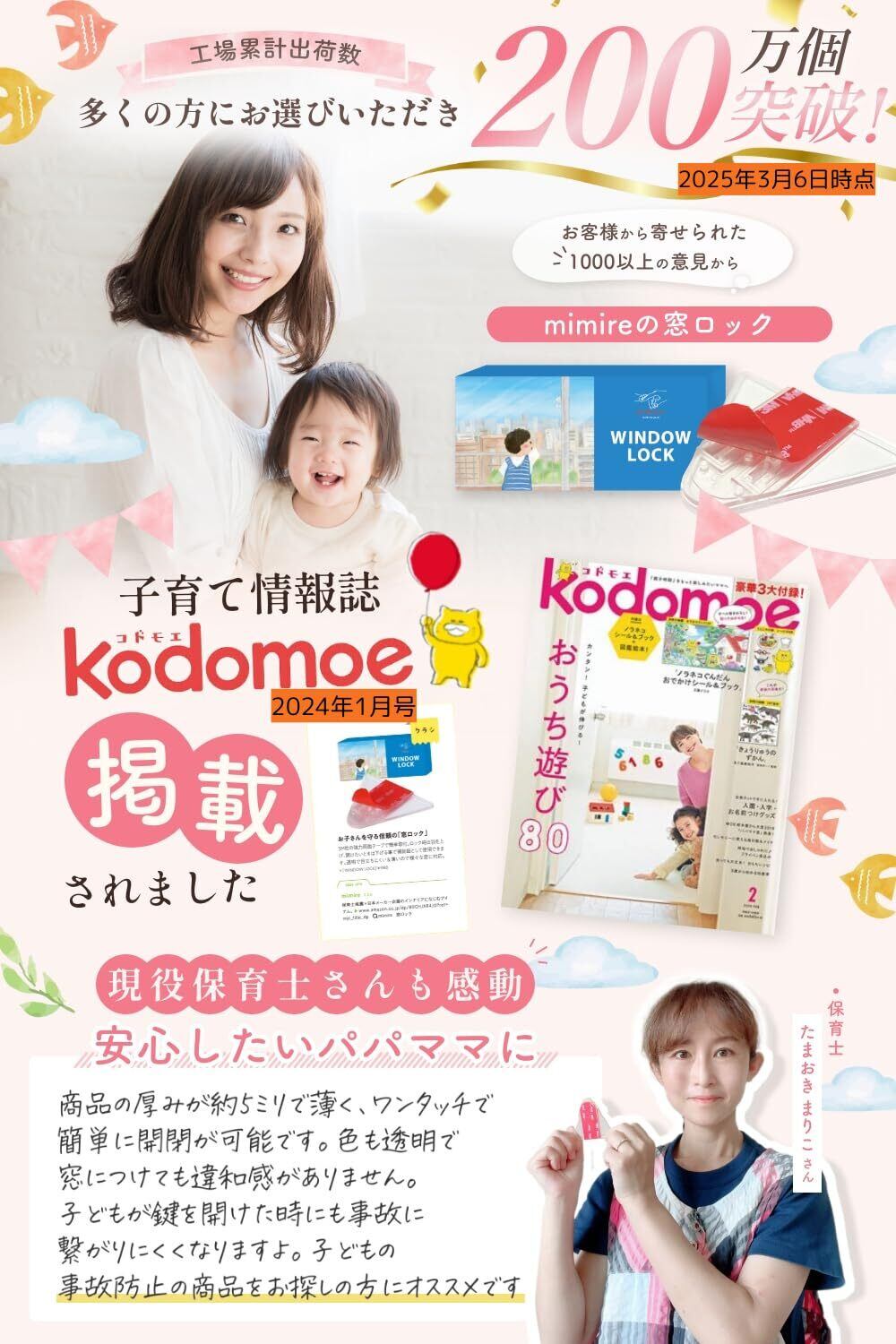 【保育士推薦×日本メーカー企画】窓ロック 引き戸ストッパー チャイルドロック [インテリアに馴染みやすい全透明&最薄モデル] mimire (8個セット)