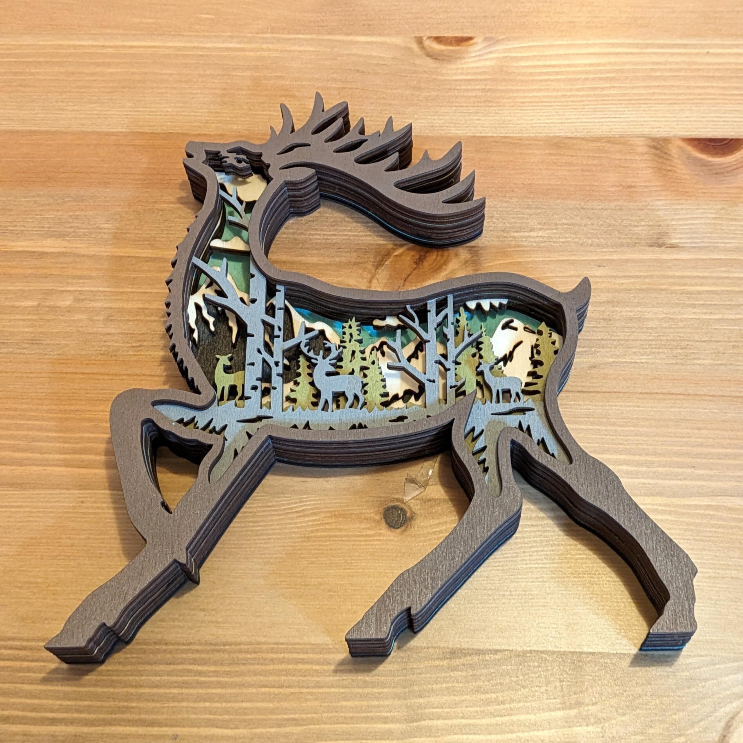 色の違う木材を重ねて立体的に作られたインテリア雑貨です