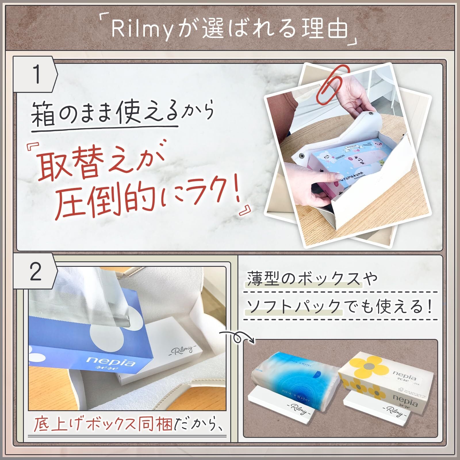 Rilmy リルミー ティッシュケース オシャレ 可愛い ティッシュカバー ティッシュボックス レザー 北欧 韓国インテリア フェイクレザー 革 (ライトブルー)