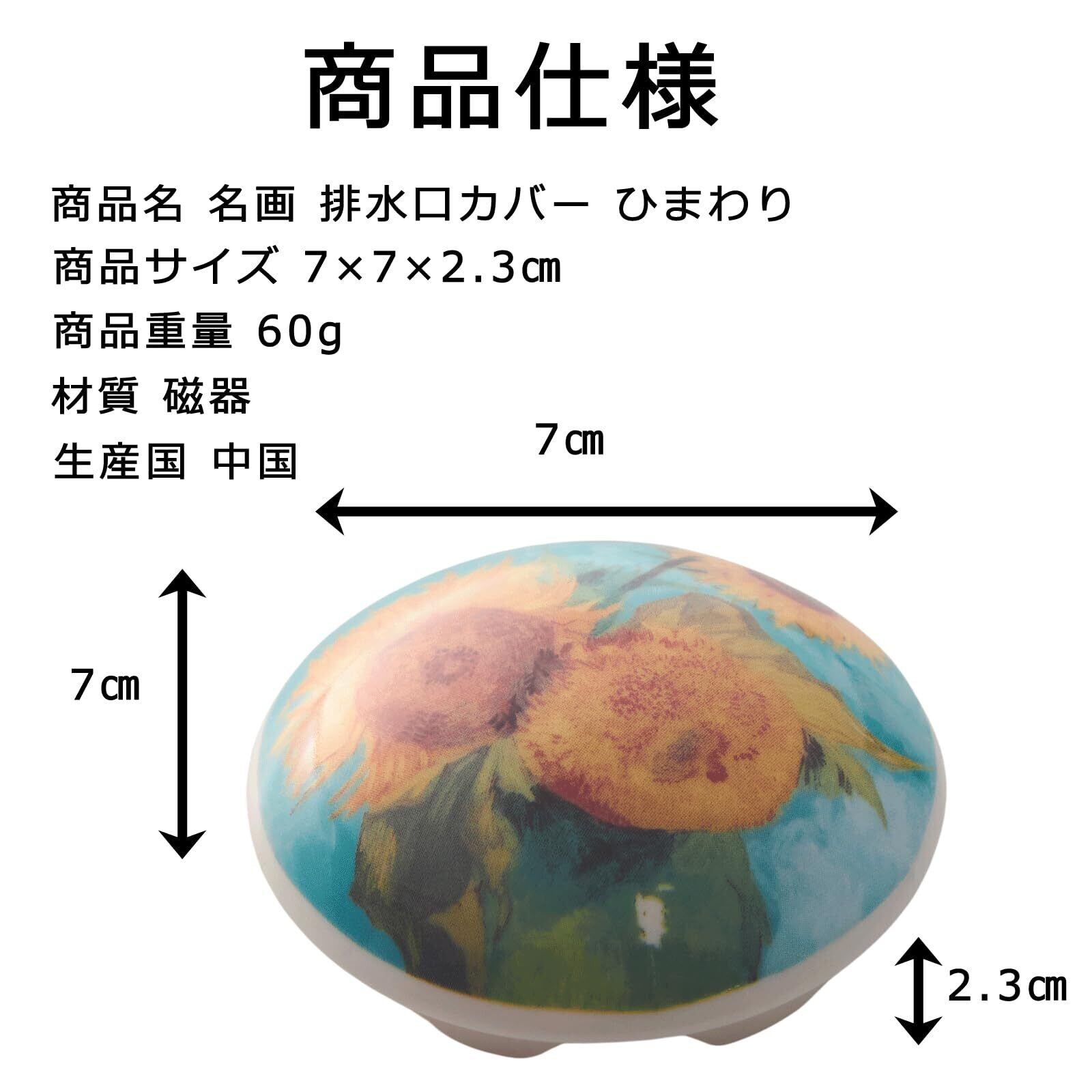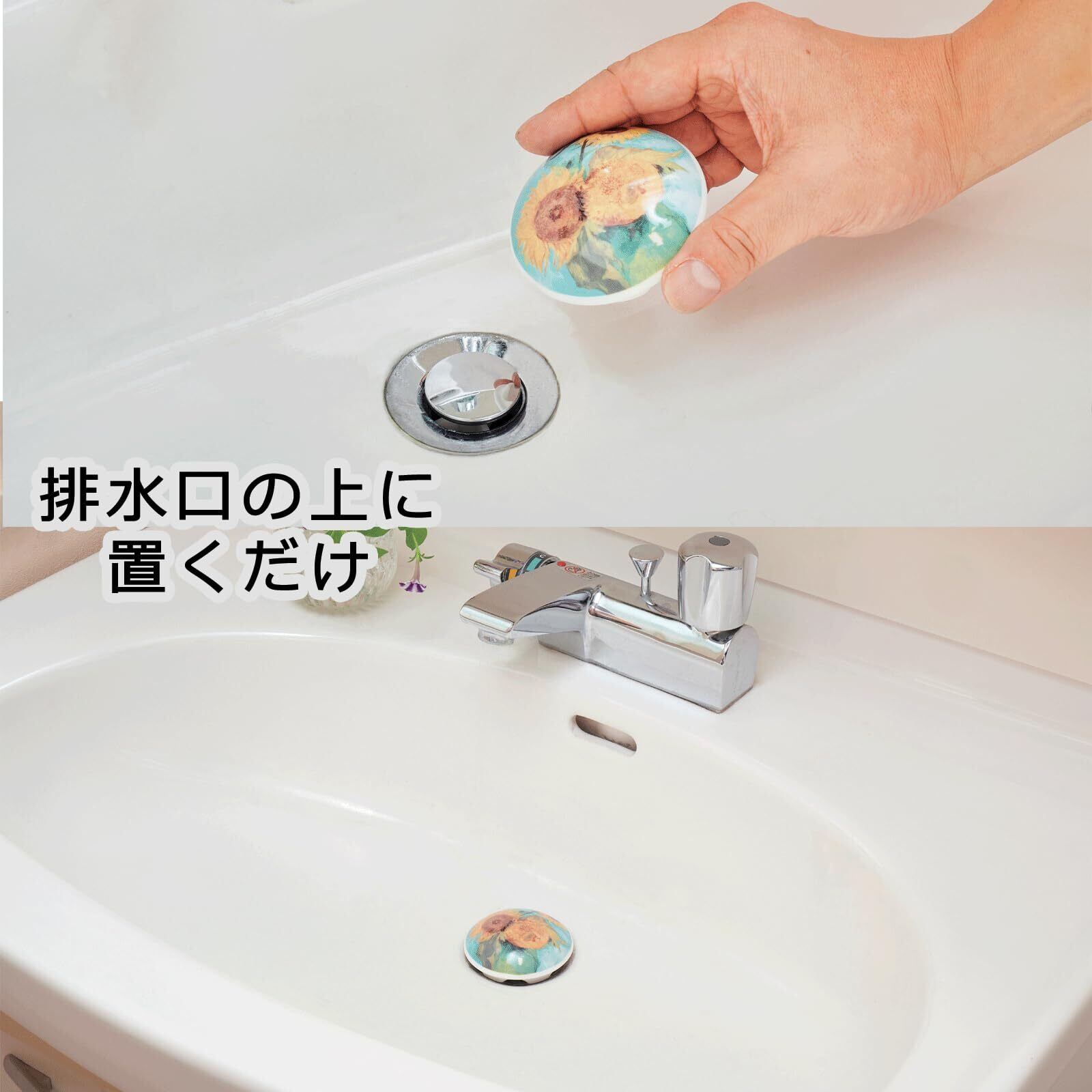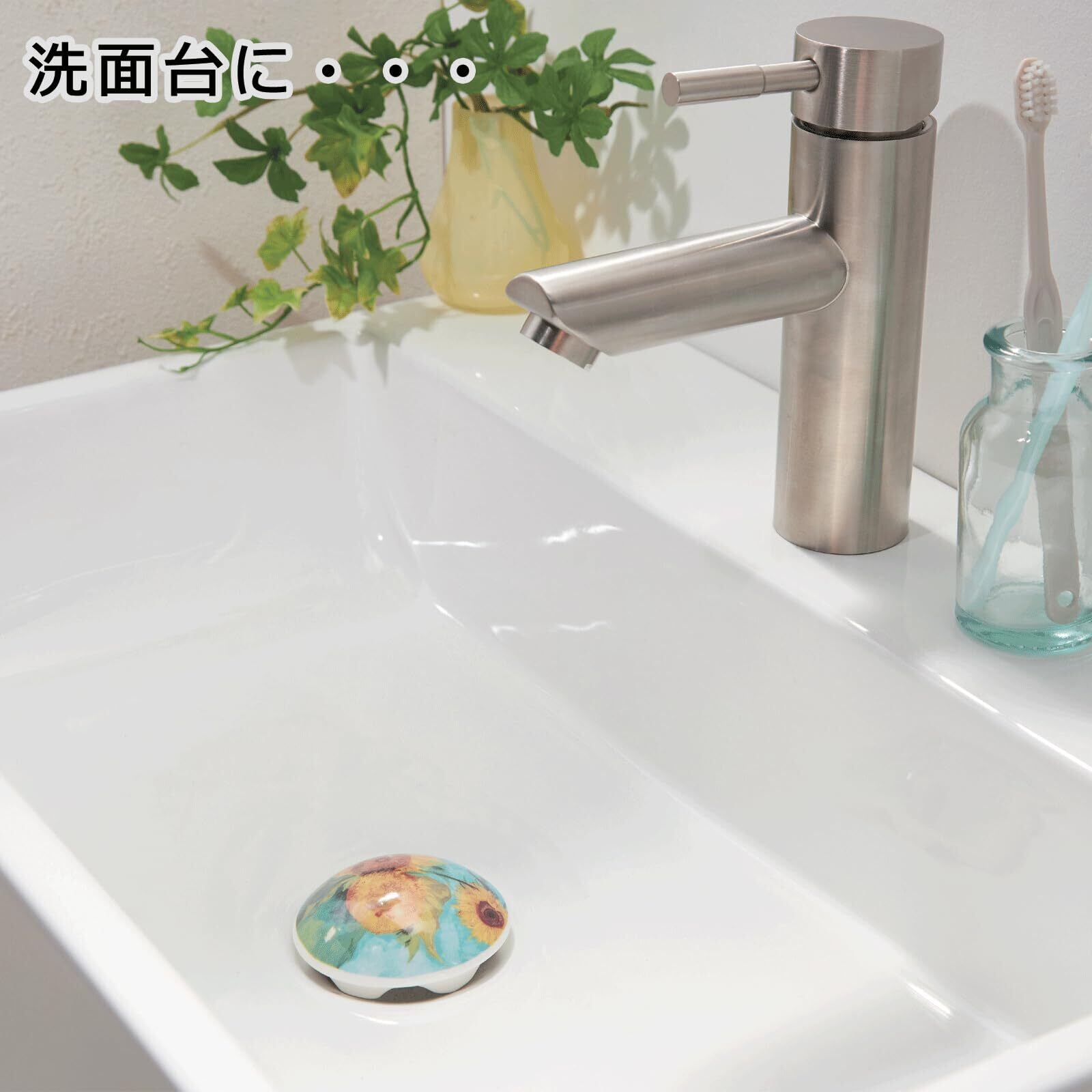サンアート 名画 排水口カバー ひまわり 洗面台 トイレ タンク カバー 水まわり かわいい インテリア おしゃれ アート エレガント 磁器 セラミック 蓋 流し台 お手洗い 81021300