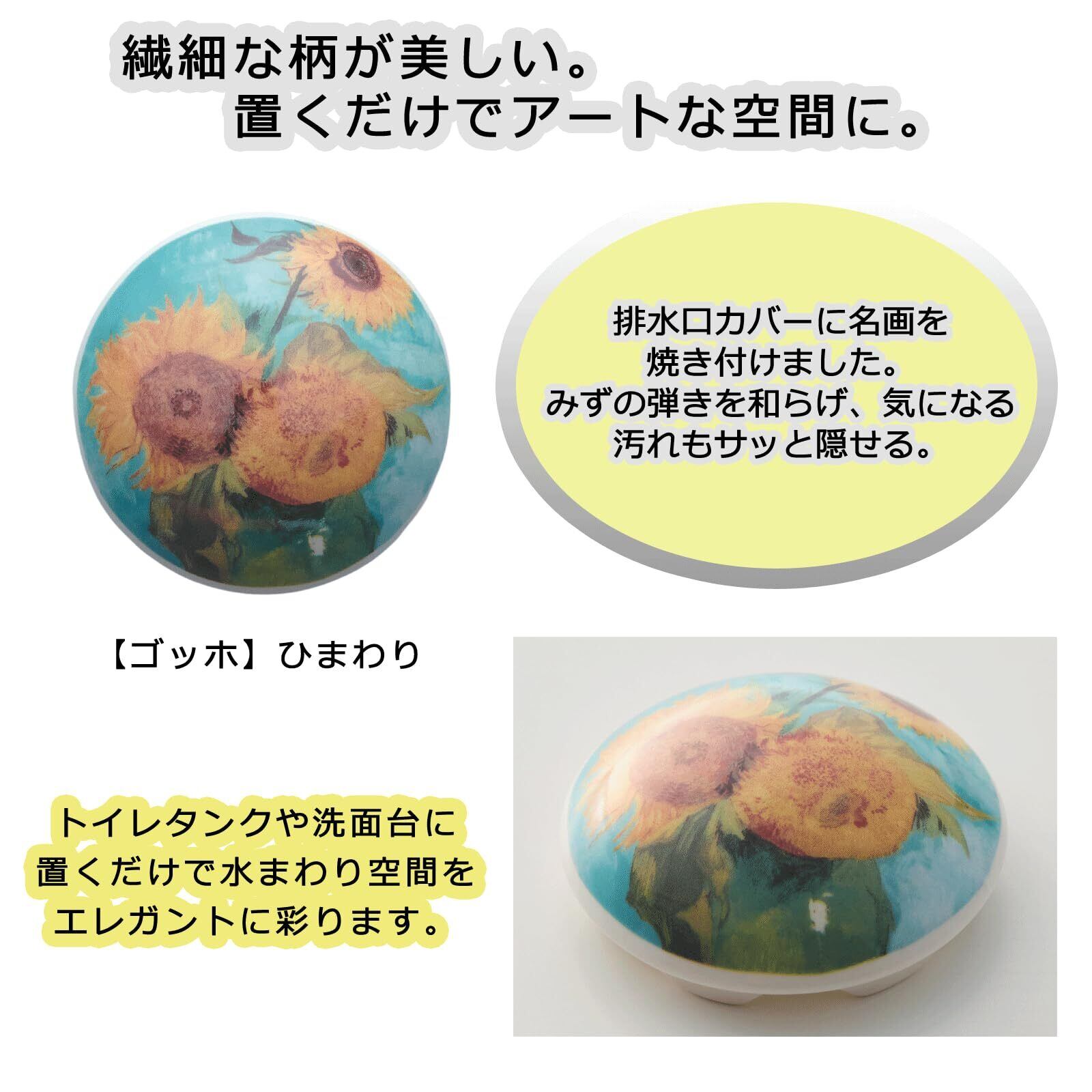 【数量限定】サンアート 名画 排水口カバー ひまわり 洗面台 トイレ タンク カバー 水まわり かわいい インテリア おしゃれ アート エレガント 磁器 セラミック 蓋 流し台 お手洗い 81021300 | paghag