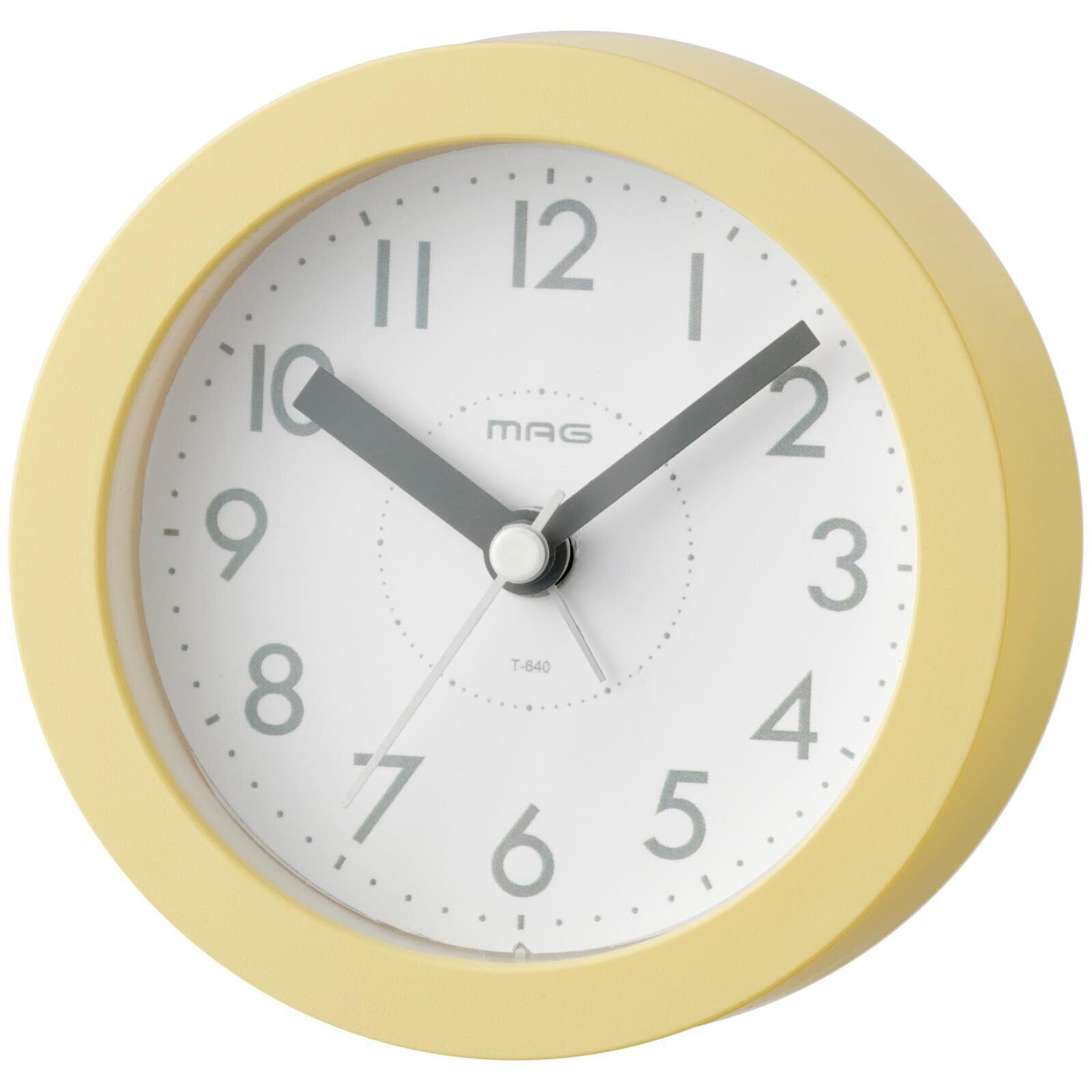 【在庫セール】MAG(マグ) 目覚まし時計 置き時計 アナログ かわいい おしゃれ インテリア 静音 連続秒針 電子音 アラーム スヌーズ ライト ライトイエロー ルント T-640A LY-Z ノア精密 | paghag