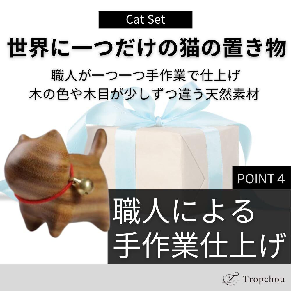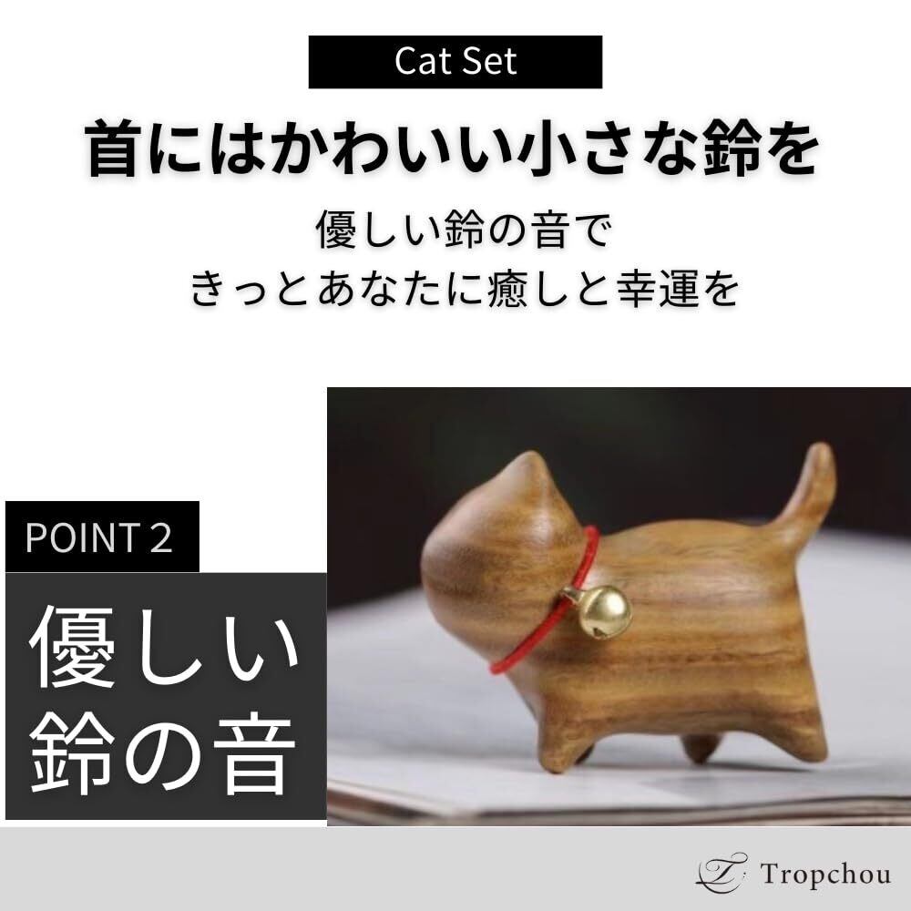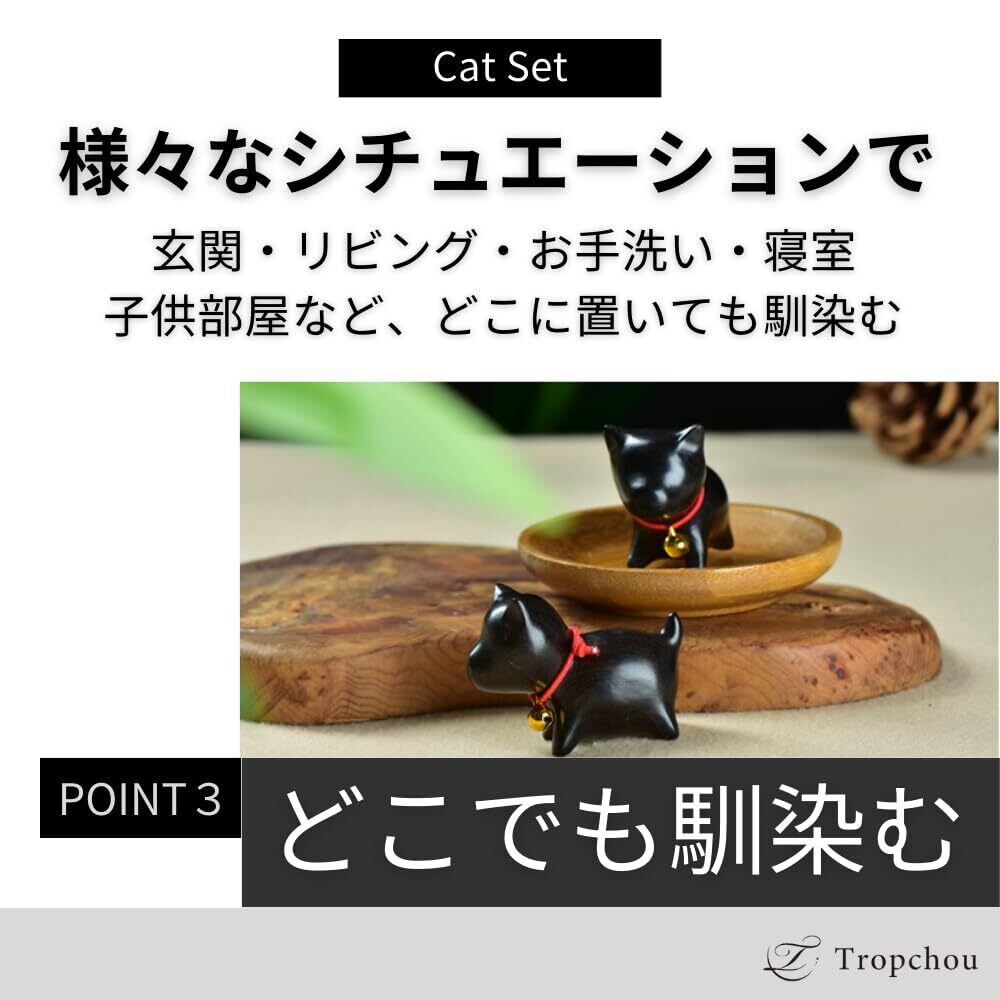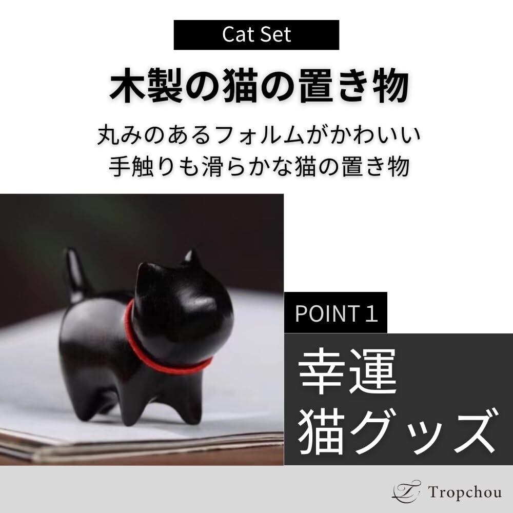 Tropchou 猫の置き物 猫グッズ まねきねこ インテリア 飾り 玄関小物 雑貨 幸運 木製 ミニ 2個セット