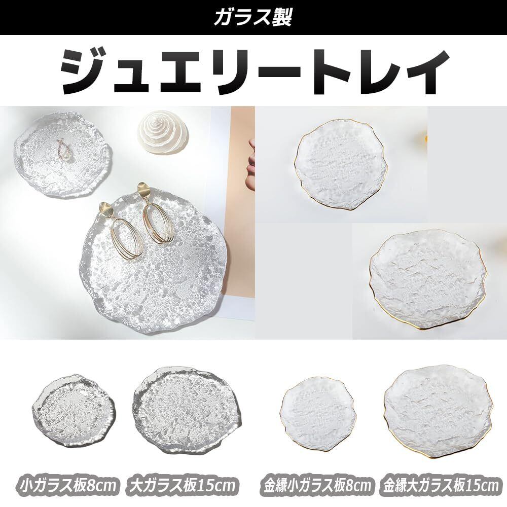 [FUPUONE] ジュエリートレイ ガラス 透明 アクセサリー置き 北欧スタイル (小ガラス板8cm)