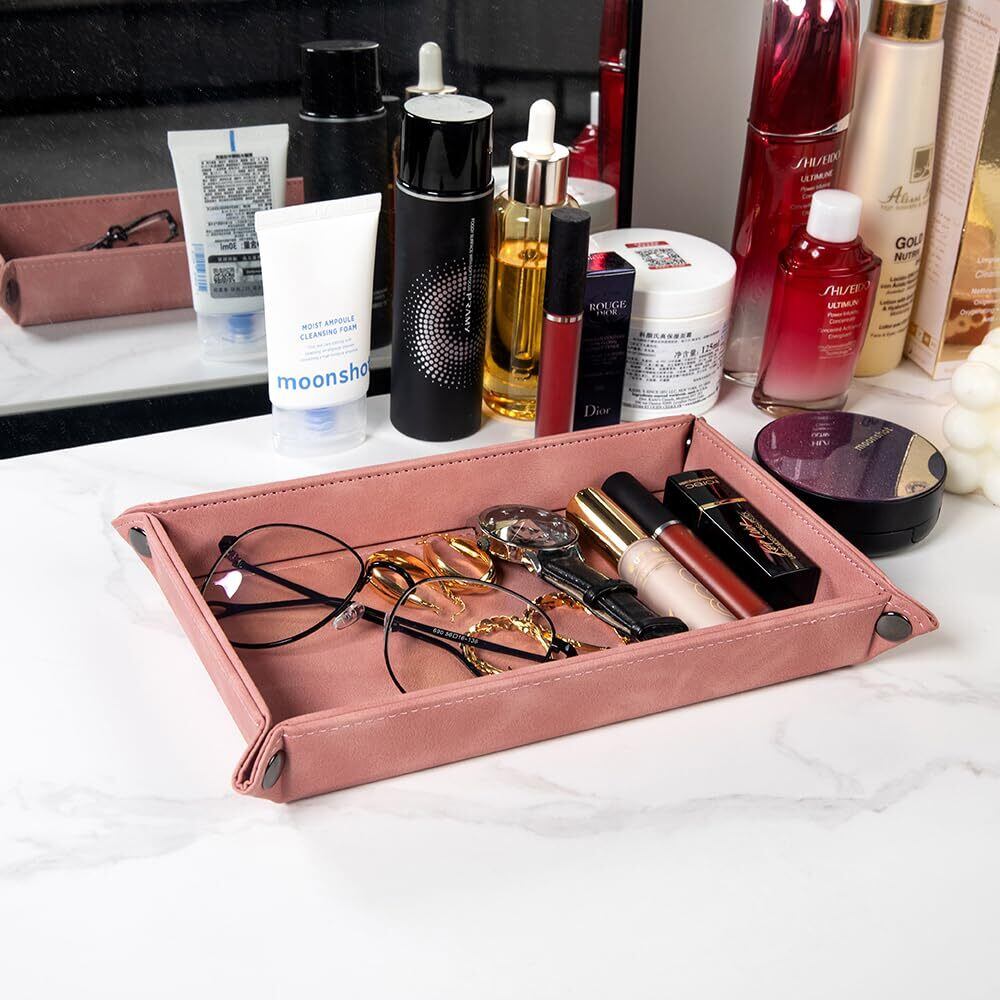 【2022最新】レザートレイ 小物入れ アクセサリートレイ 小物トレー 折り畳み式 こものいれ ボックス 腕時計 鍵 スマホ メガネ アクセサリー リモコン 収納ボックス おしゃれ 携帯便利 Mサイズ | paghag