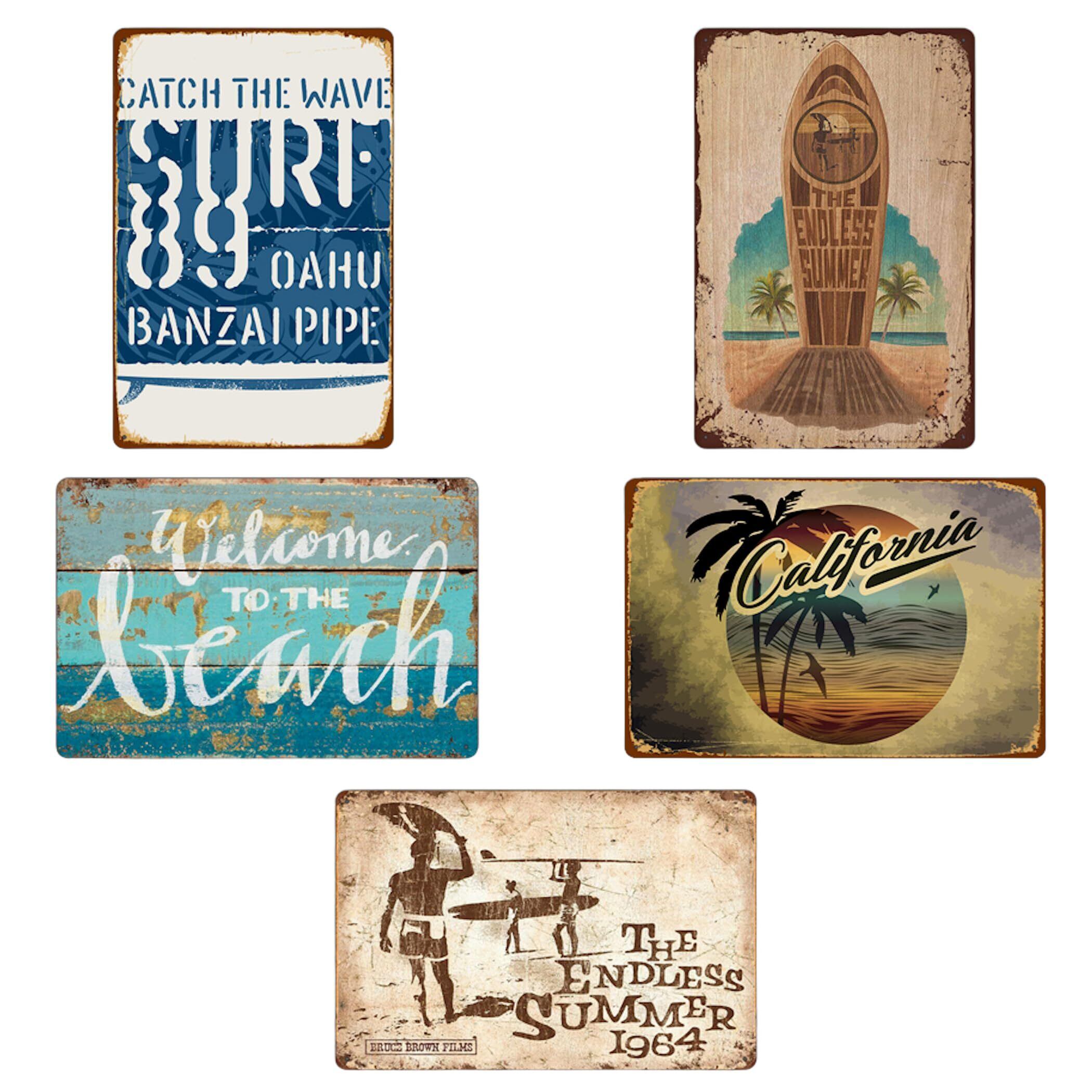 ブリキ 看板 サーフ ビーチ 壁飾り アメリカン プレート インテリア レトロ 雑貨 アンティーク ヴィンテージ風 (SURF4)