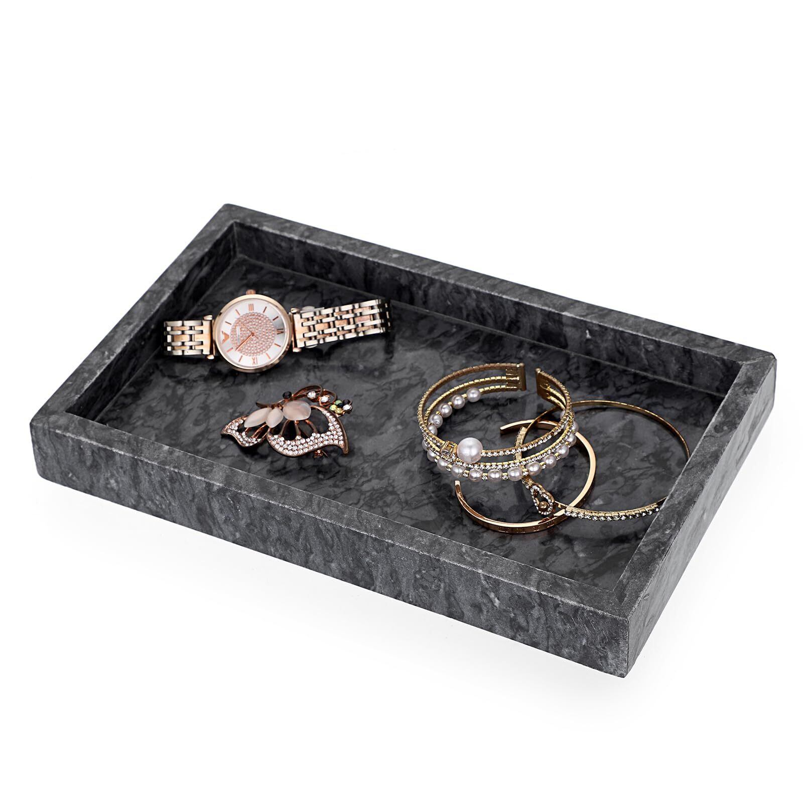 BSTKEY 大理石制トレイ ジュエリートレイ 小物置き 小物トレイ 小物入れ トレー メガネ置き シンプルトレイ オシャレアクセサリー キー収納 小物収納 玄関用 洗面台 ホテル用トレー 卓上収納 大理石制 1本セット ブラック