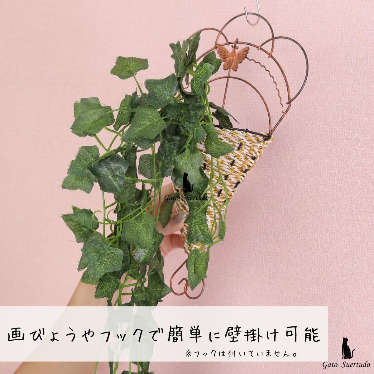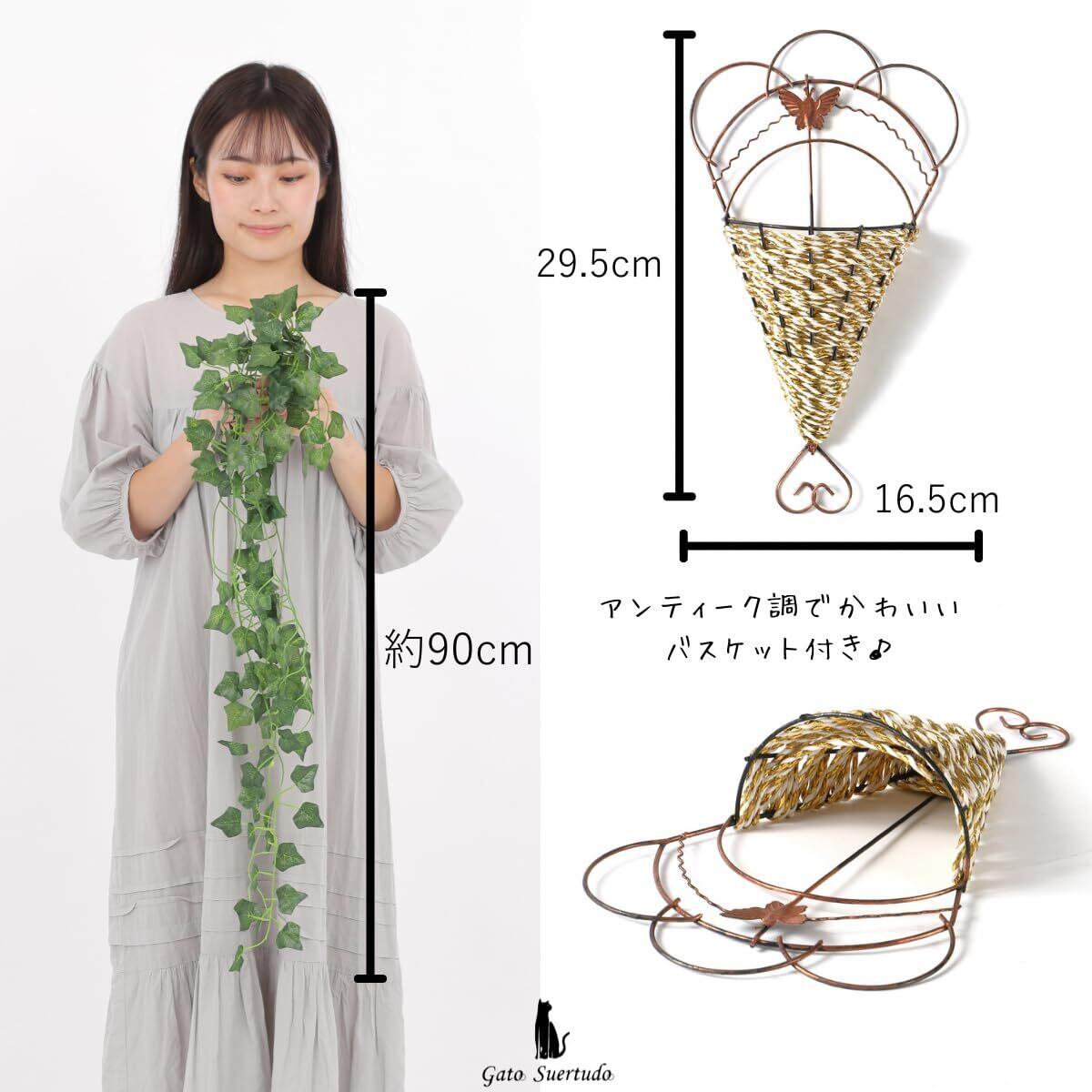 ✿【オシャレなバスケット付き】かわいいアンティーク調の壁掛け用バスケット(サイズ:縦29.5cm✕横16.5cm)が付いているので、簡単に画びょうやフックで装飾可能です。葉っぱを差し込むだけでパッと華やぐインテリア装飾がすぐに完成します。