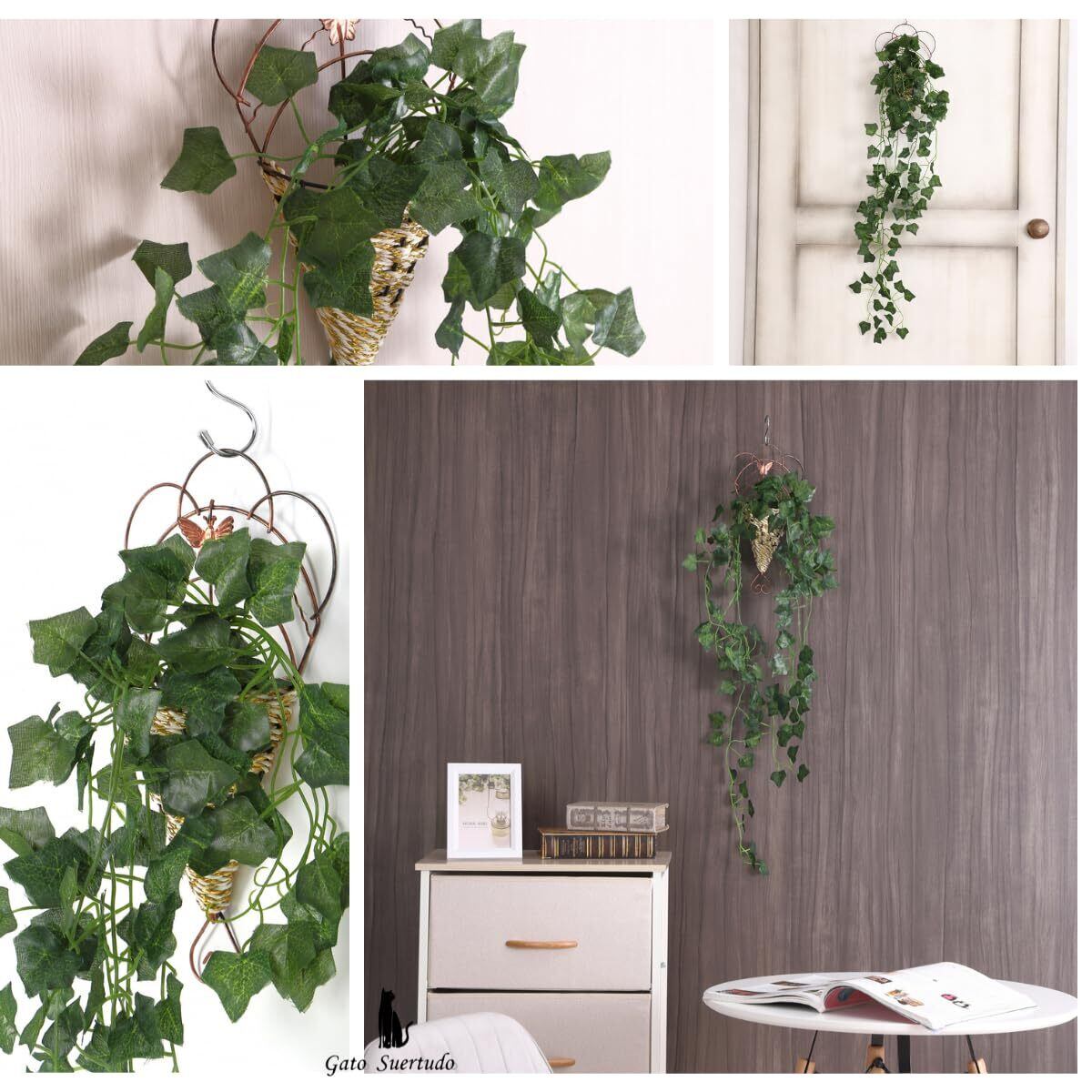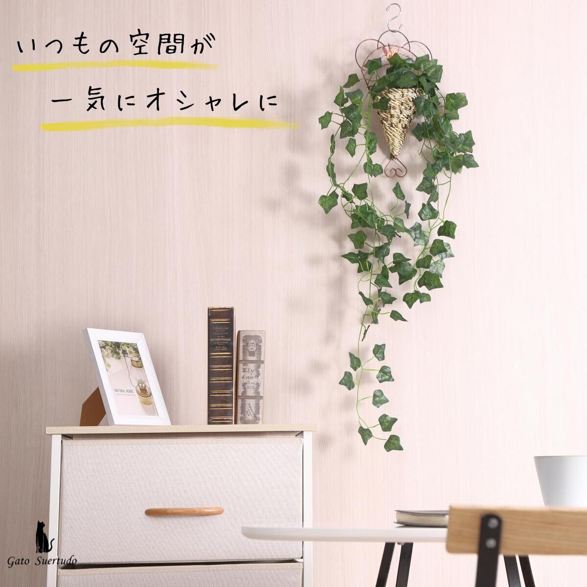 ✿【素材】葉はプラスチック、ハンギングバスケットは丈夫な金属とポリエステルでできています。葉は本物と遜色ない仕上がりで、リアルなのにお手入れ不要なのが嬉しいポイントです。