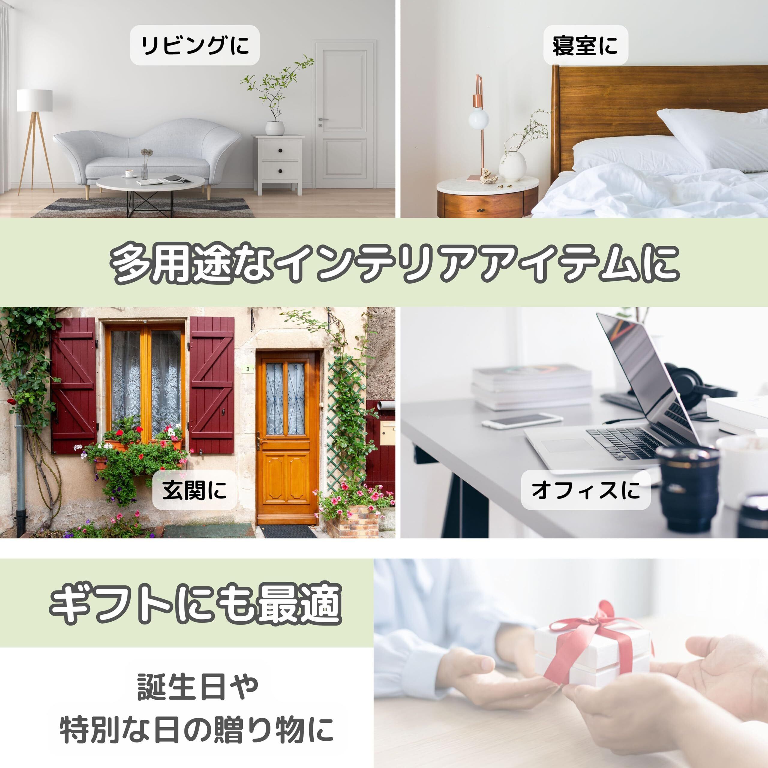 【多用途インテリア】リビング、オフィス、寝室、玄関など、どんな空間にも自然に馴染みます。ギフトにも最適で、特別な日の贈り物にぴったりです。※鉢は紙パルプ製のため、水気のある場所には置かないでください。