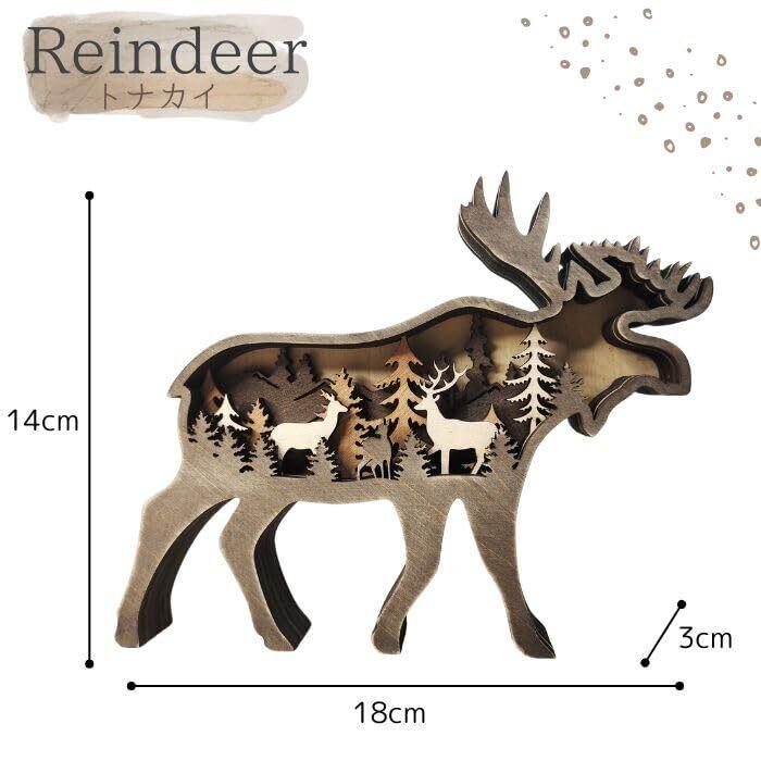 [ハルジオ] 置物 インテリア 木製 オブジェ 北欧 インテリア雑貨 北欧雑貨 置き物 北欧インテリア 木製インテリア 雑貨 おしゃれ 可愛い 玄関 動物 小物 おもしろグッズ 置きもの プレゼント (トナカイ)
