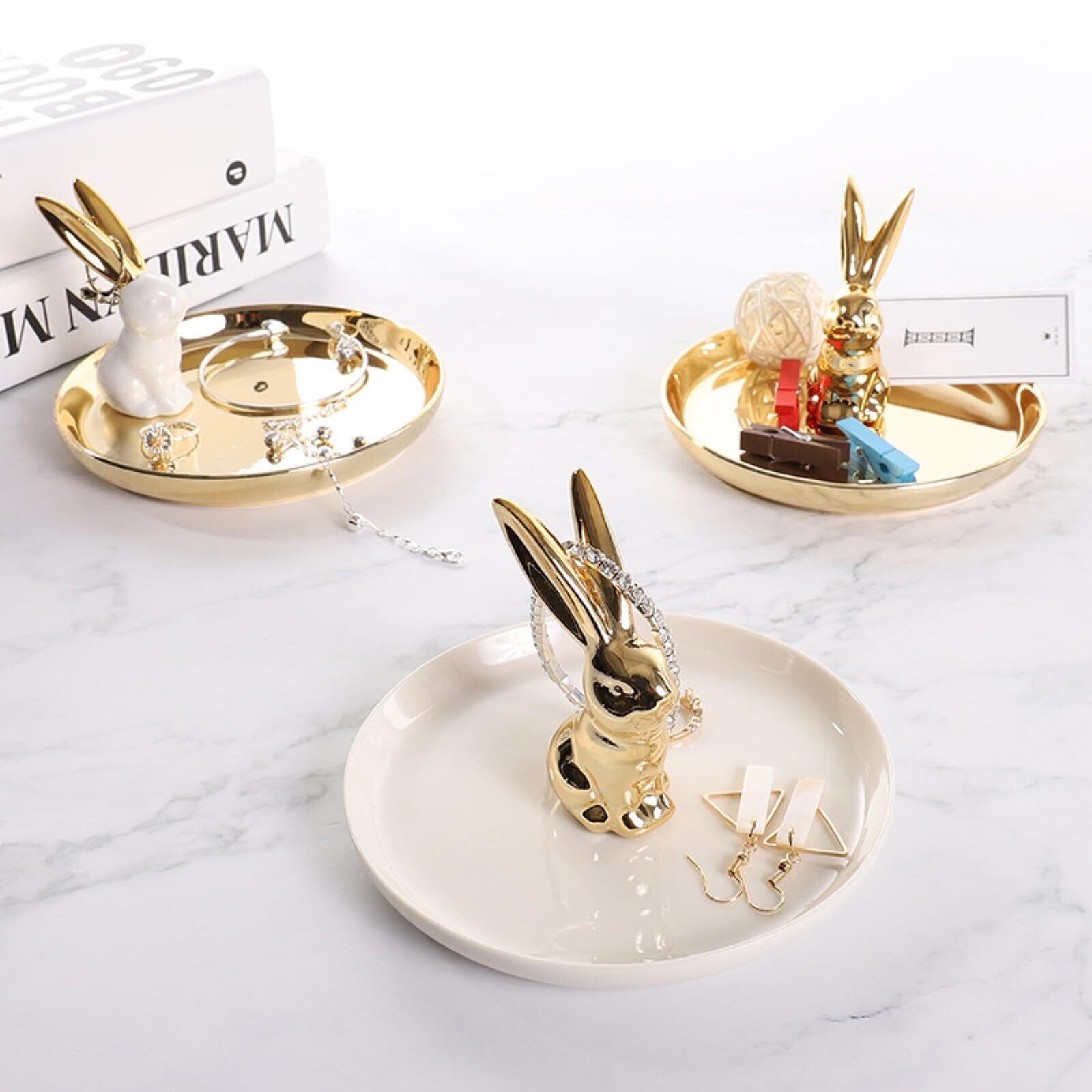 アクセサリー トレイ ジュエリー トレー 収納 おしゃれ かわいい ゴールド インテリア 置物 小物 入れ 小皿 ピアス ネックレス 指輪 イヤリング 鍵 コイン (うさぎ(金))