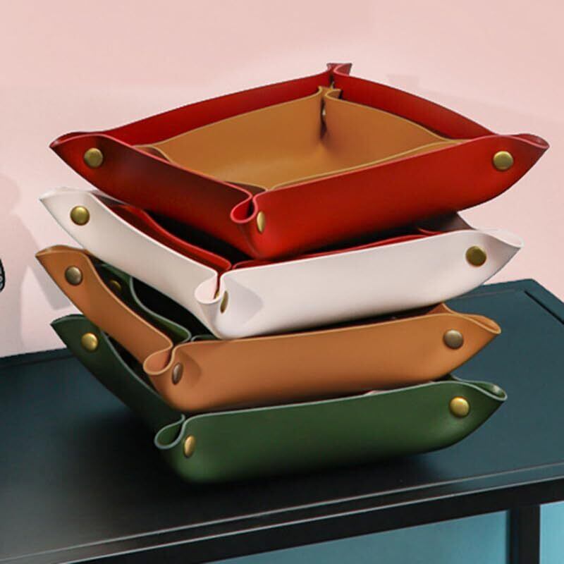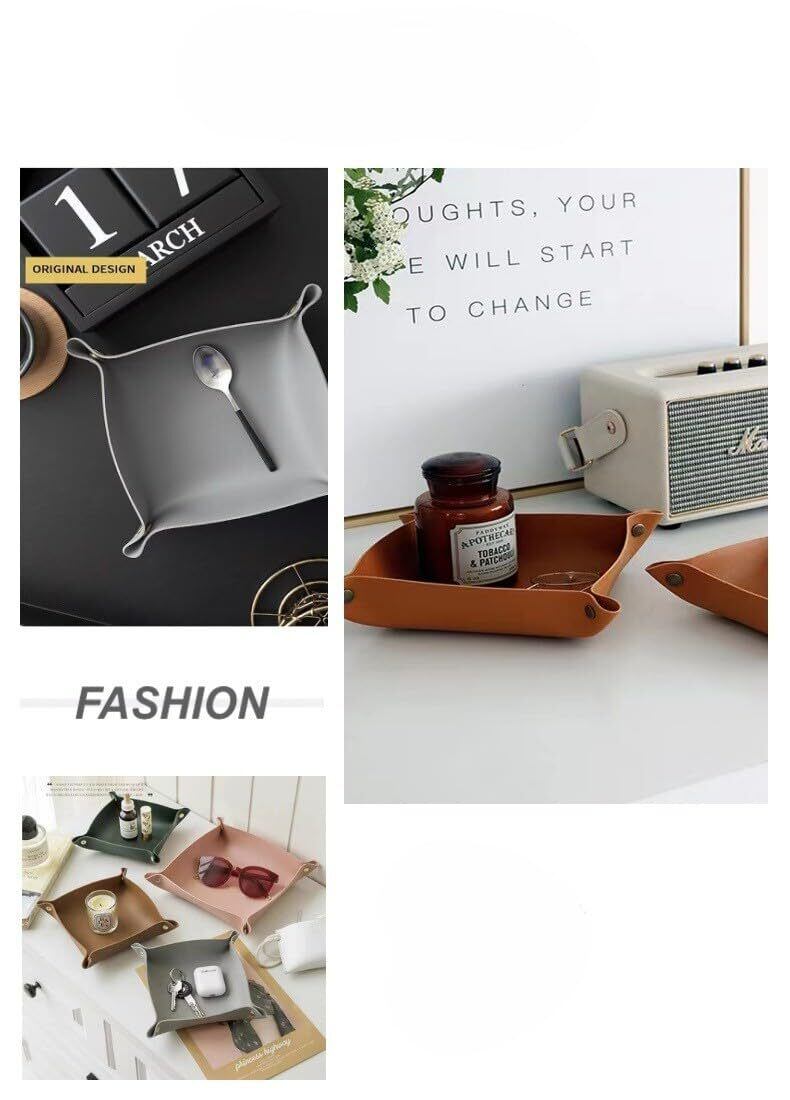 JFOLKS 【 どんな インテリア にも 調和 する】 アクセサリー トレー レザー 小物入れ 腕時計 指輪 メガネ 収納 トレー シンプル デザイン 北欧 鍵入れ イヤホン おしゃれ 7カラー ブラック