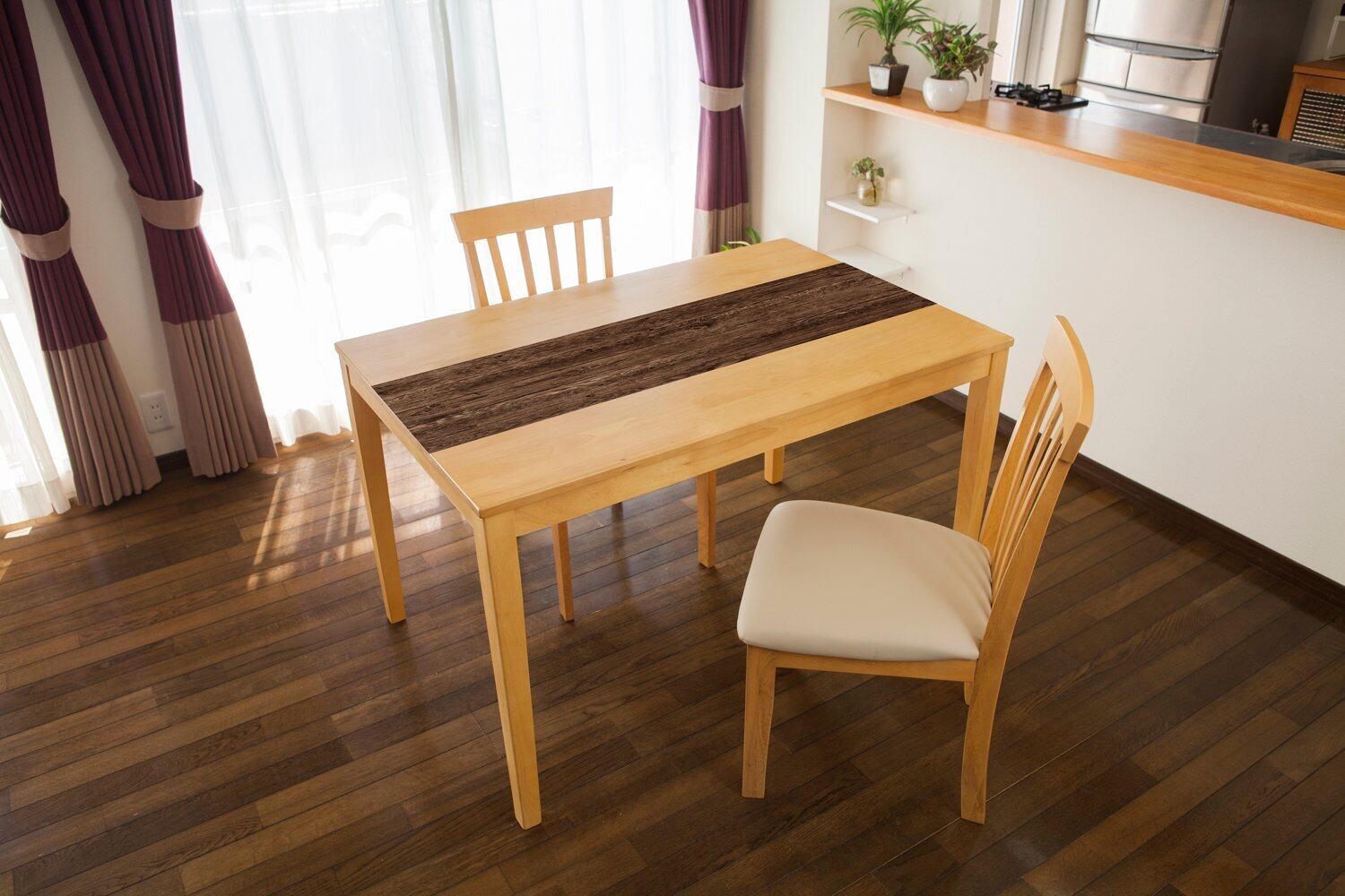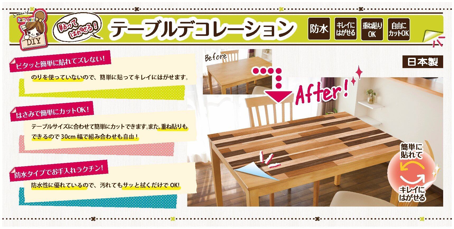カッターやはさみで簡単にカットできますので、テーブルのサイズや形に合わせて貼ることができます