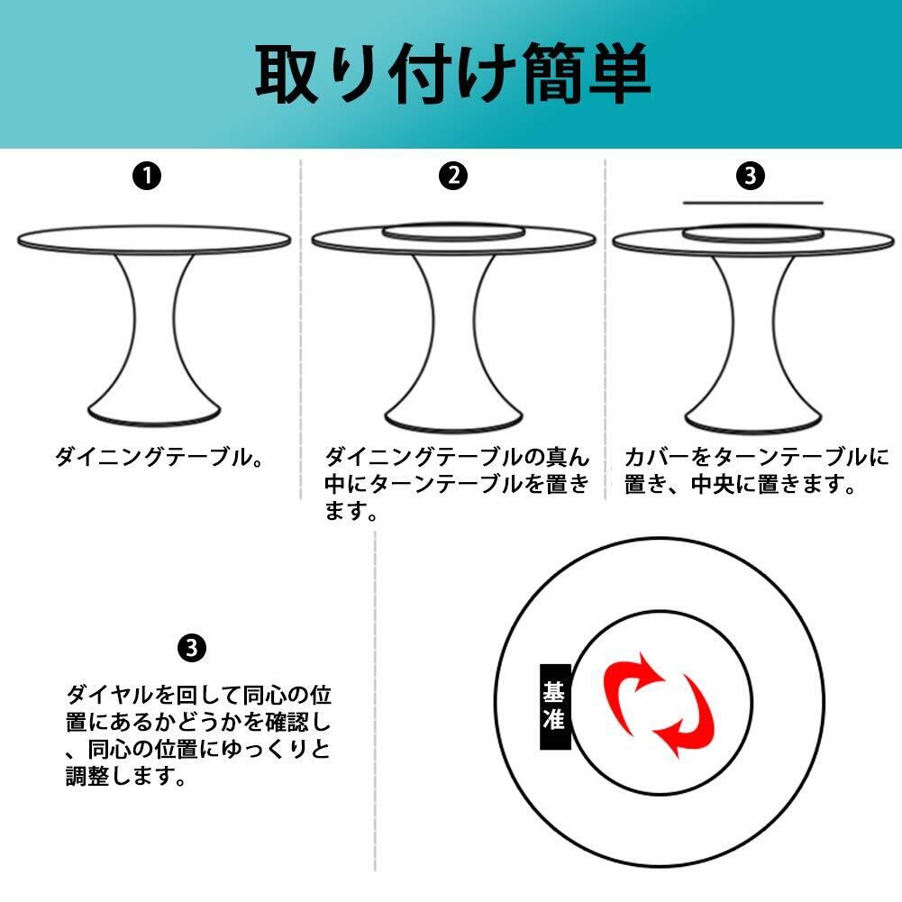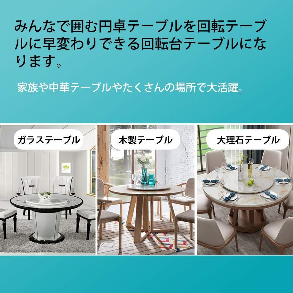 【360°回転】ターンテーブルベアリングを360°回転させることができ、便利なスイベルデザインはテーブルに最適です。みんなで囲む円卓テーブルを回転テーブルに早変わりできる回転台テーブルになります。 家族や中華テーブルやたくさんの場所で大活躍。ケーキデコレーション、TVモニタースタンド、ケータリングサービス、食品ディスプレイ、サービングにも最適です!