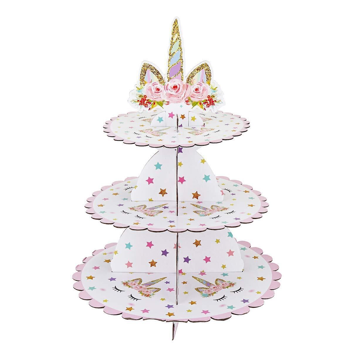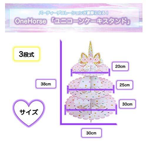 OneHorse 3段 ユニコーン ケーキスタンド テーブル デコレーション ゆめかわいい パーティー 装飾 飾り付け 紙製