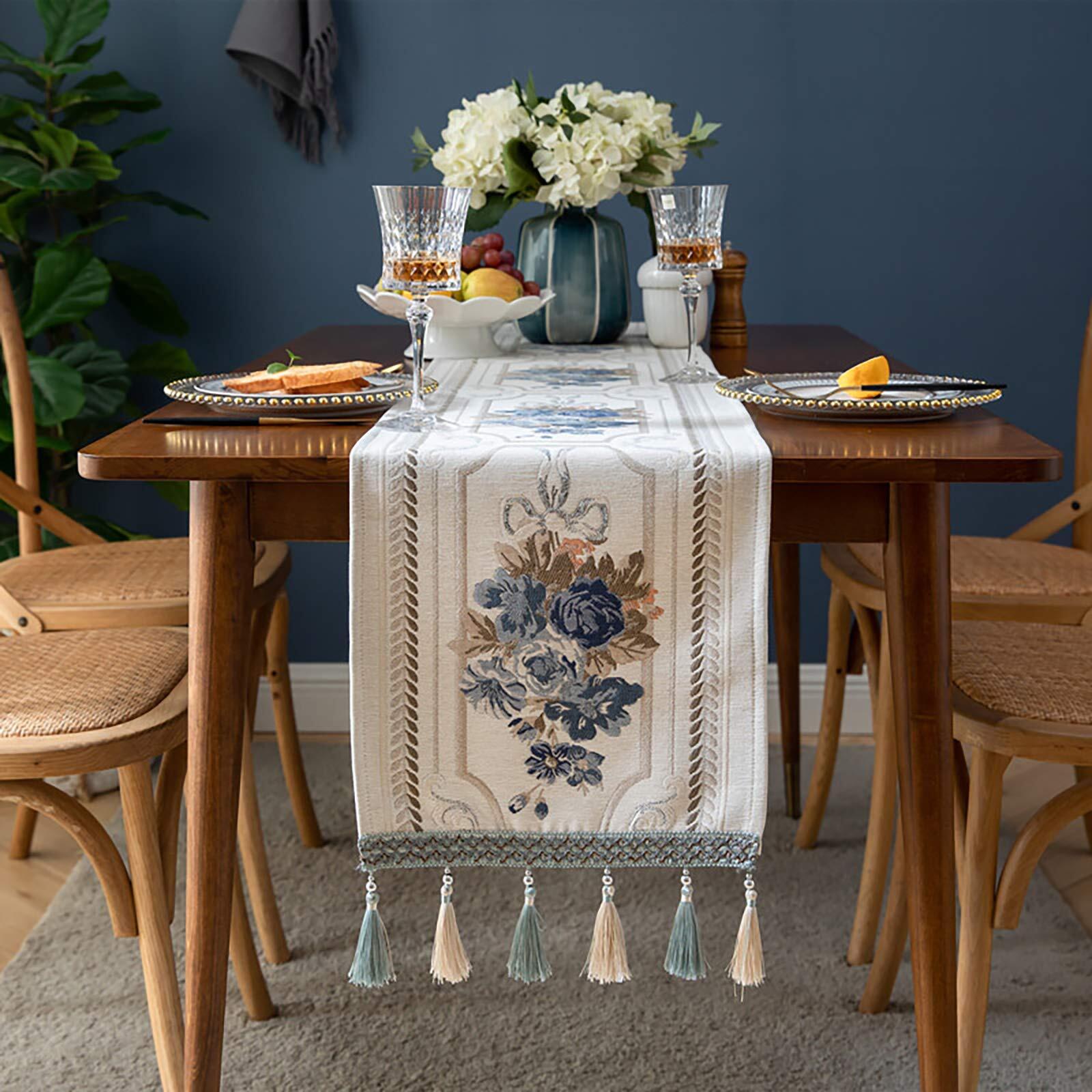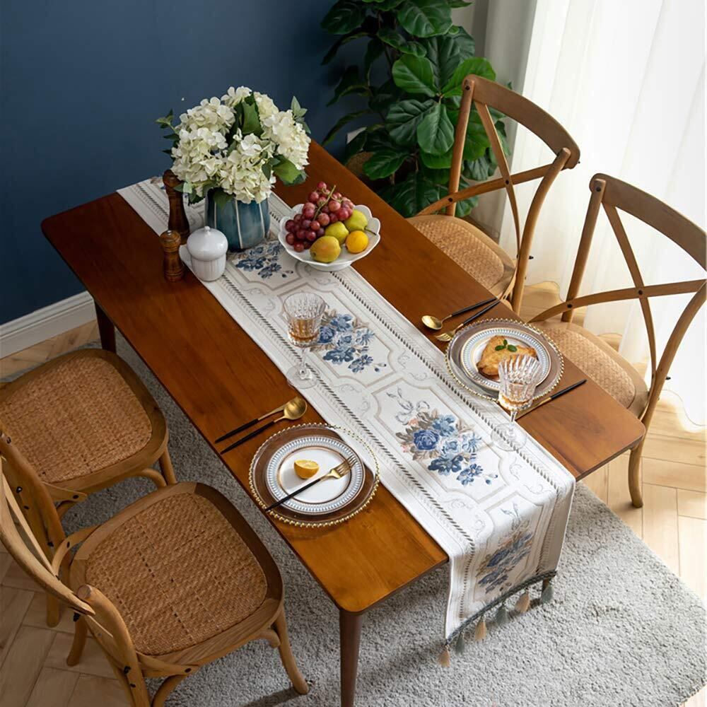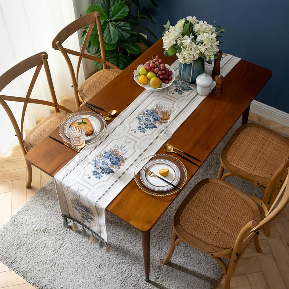 Semaxy テーブルランナー北欧 おしゃれ テーブルセンター 長方形 宮廷風 テーブルクロス エレガント 花 タッセル付き クラシック ホーム インテリア 装飾品 パーティー 新年 結婚式 宴会 お店 デコレーション 幅33cm ホワイト 33X180cm