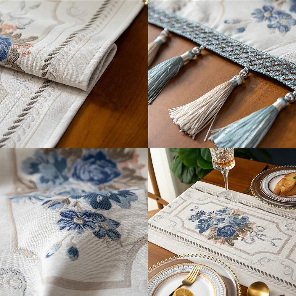 【新春セール】Semaxy テーブルランナー北欧 おしゃれ テーブルセンター 長方形 宮廷風 テーブルクロス エレガント 花 タッセル付き クラシック ホーム インテリア 装飾品 パーティー 新年 結婚式 宴会 お店 デコレーション 幅33cm ホワイト 33X180cm