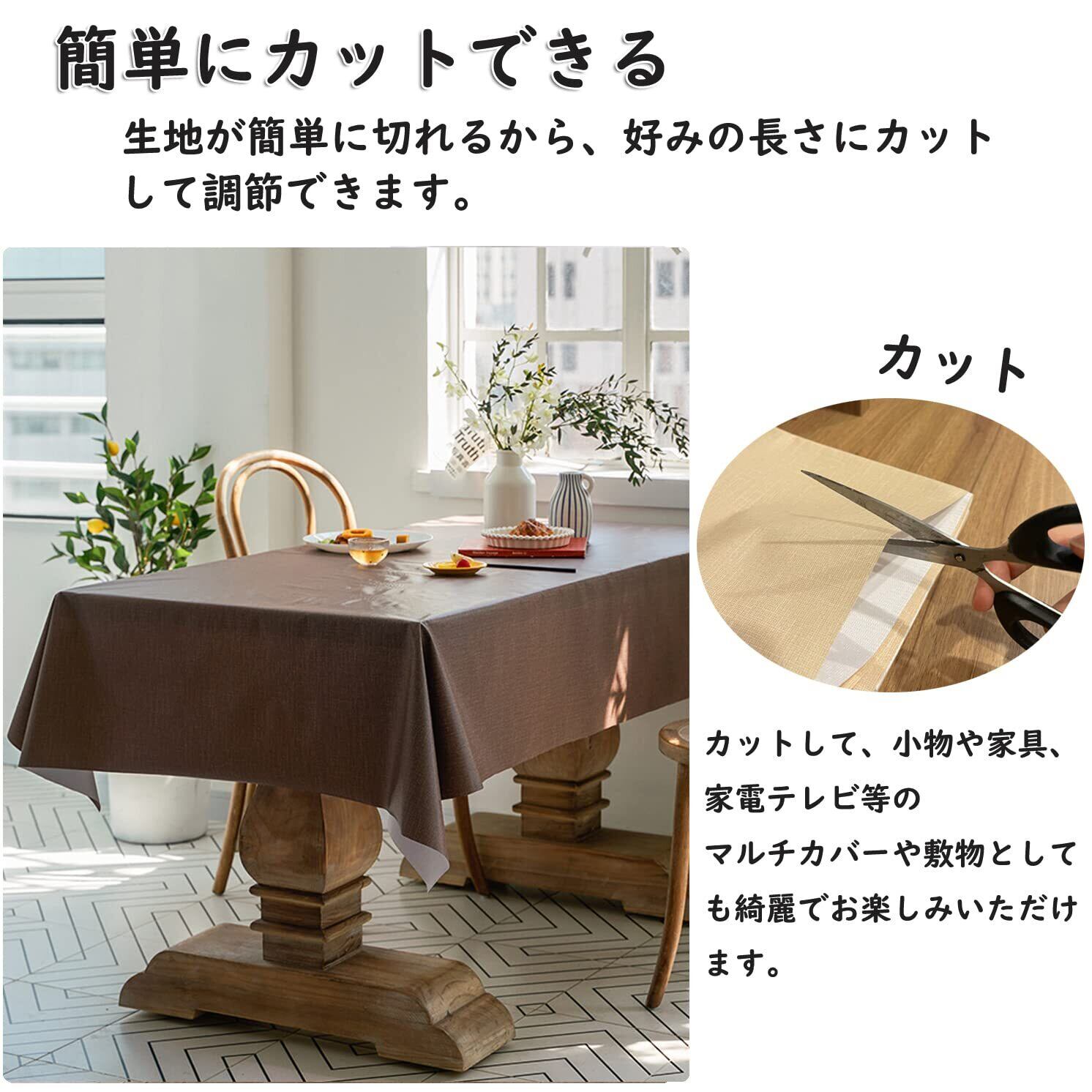【在庫処分】Forhomelife テーブルクロス ビニール 撥水 おしゃれ PVC製 無地 テーブルカバー 防水 防油 汚れ防止 耐久 耐熱 ずれにくい 長さ調節可 厚手 140x180cm ブラウン | paghag