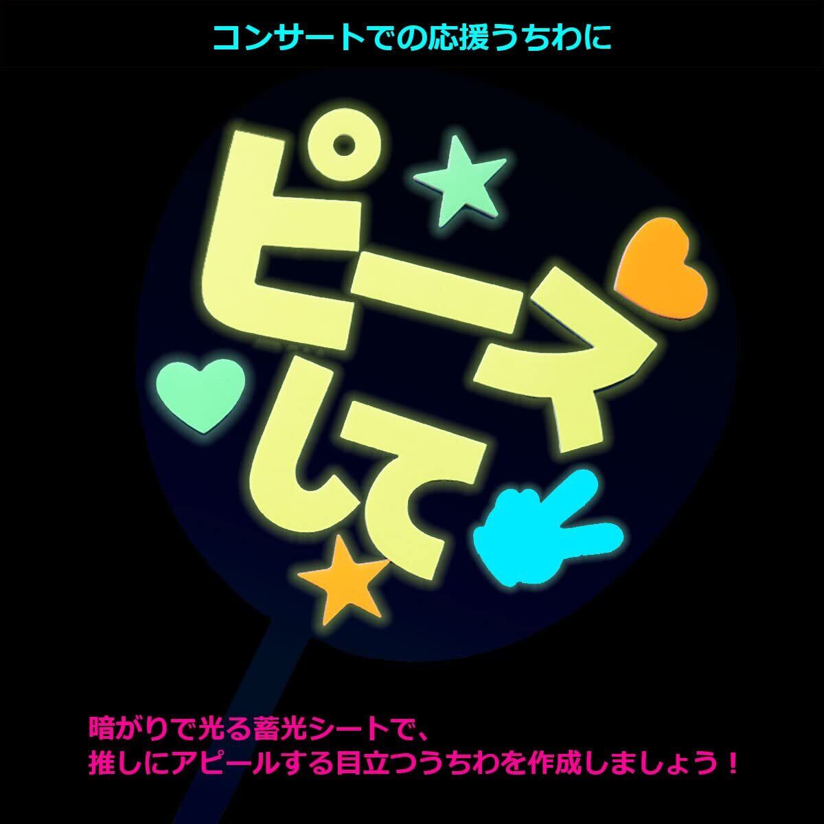 【コンサートの応援うちわに】暗がりで光る蓄光シートで、推しにアピールする目立つうちわを作成しましょう!裏面シール付きで貼りつけが簡単です。 ※イベントやライブの前にライトを照射し、蓄光してからご使用ください。
