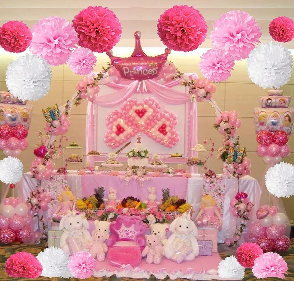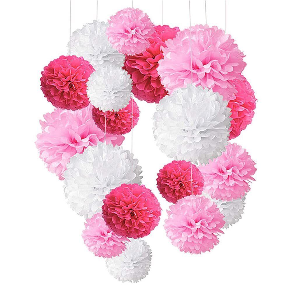 Yolrky ペーパーフラワー 紙花 ペーパーポンポン パーティー 飾り付け 結婚式 誕生日 祝い 記念日 お祭り デコレーション (ピンク)