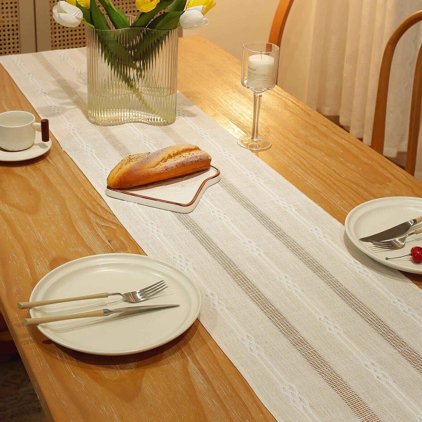 2. ❣️【素材】: テーブルランナーはコットンとリネン製で、柔らかく、耐久性があり、耐摩耗性があり、再利用可能で、色褪せしにくく、長期間使用できます。