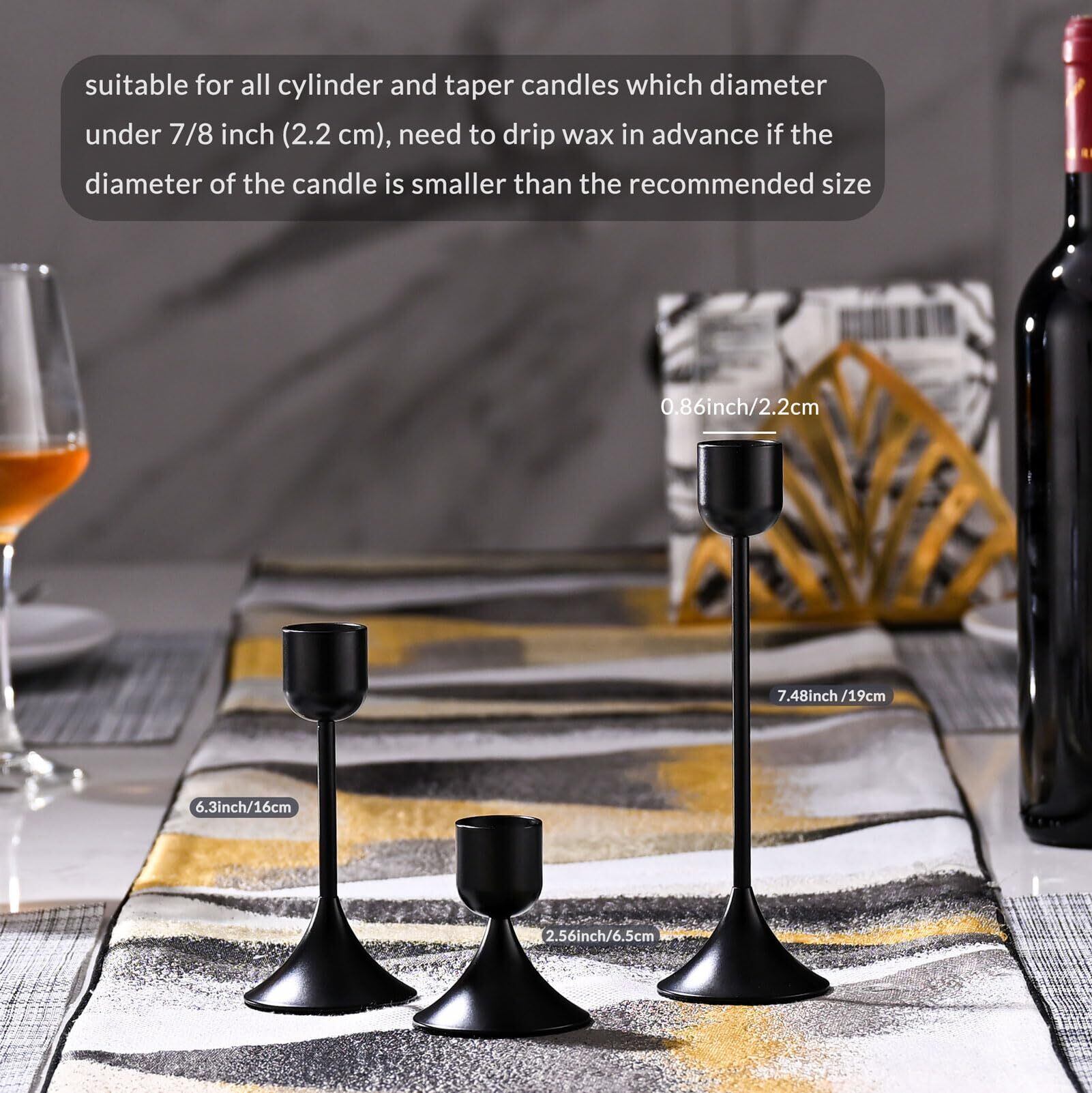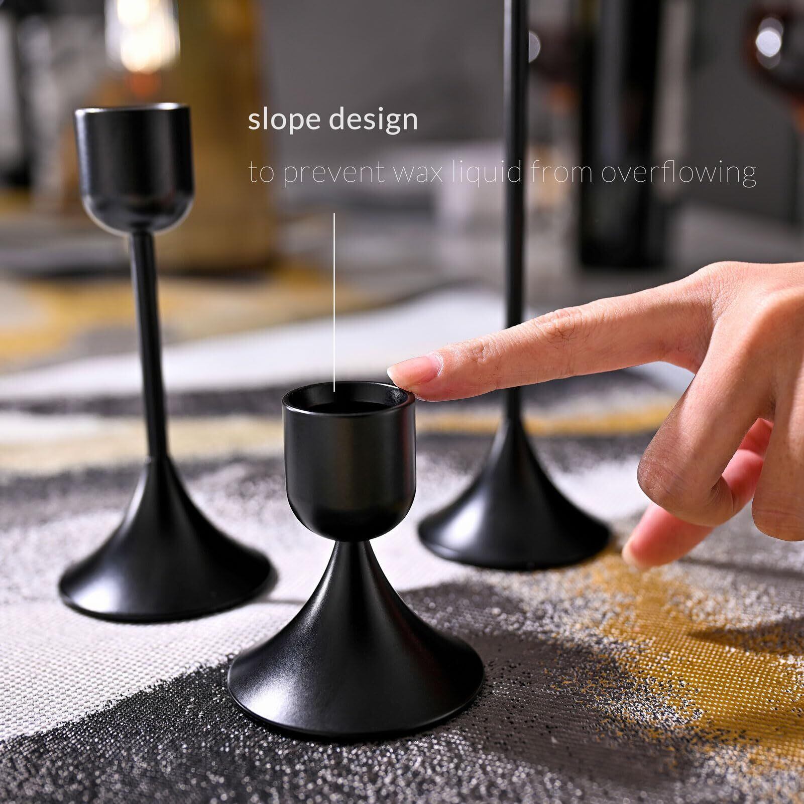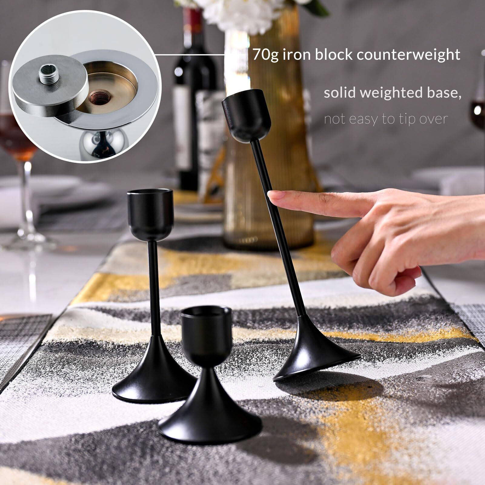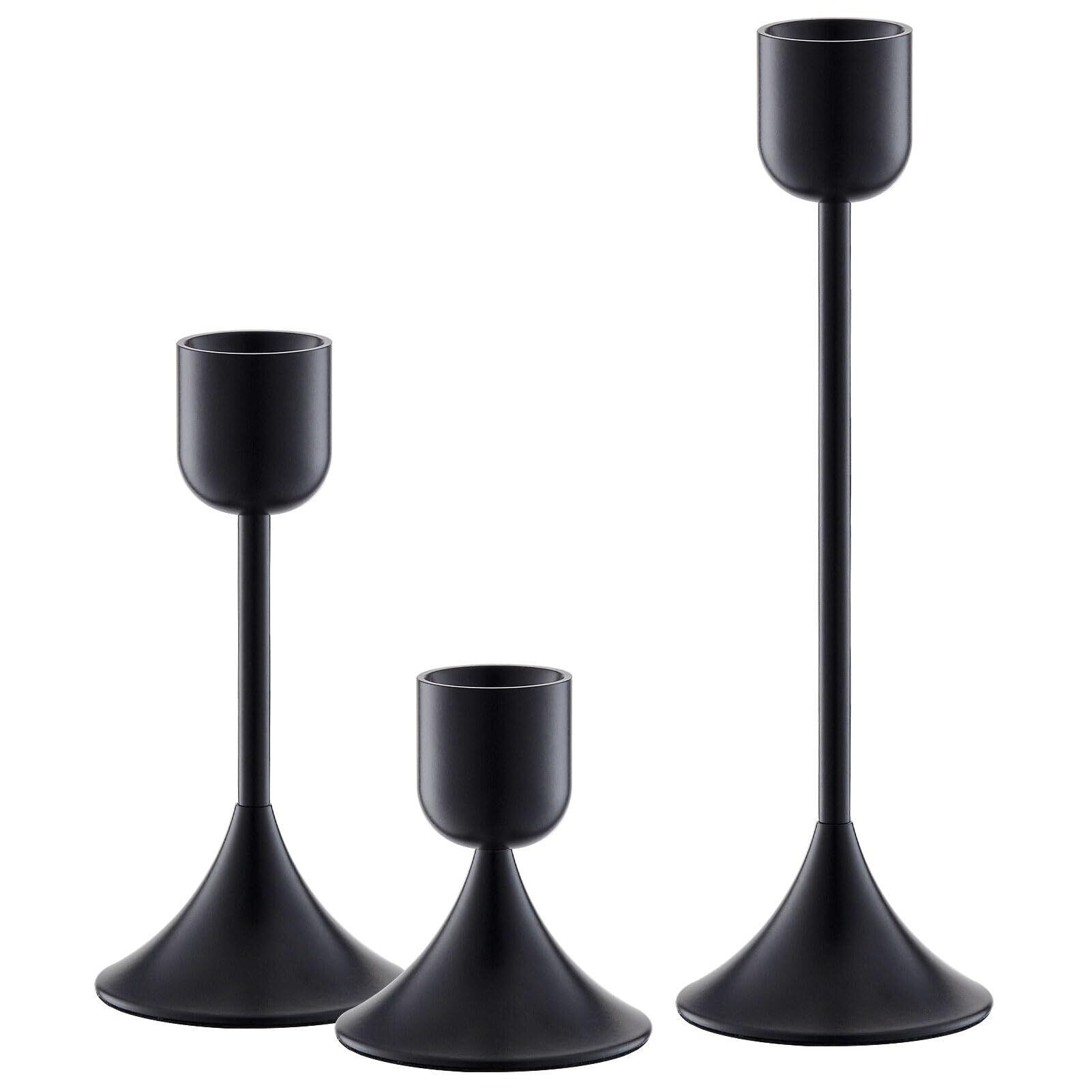 idyllictime キャンドルホルダー メタル ヘビーベース テーブルデコレーション デコレーション クリスマス パーティー ウェディング ハロウィン (ブラック, 1組 (3 Pcs))