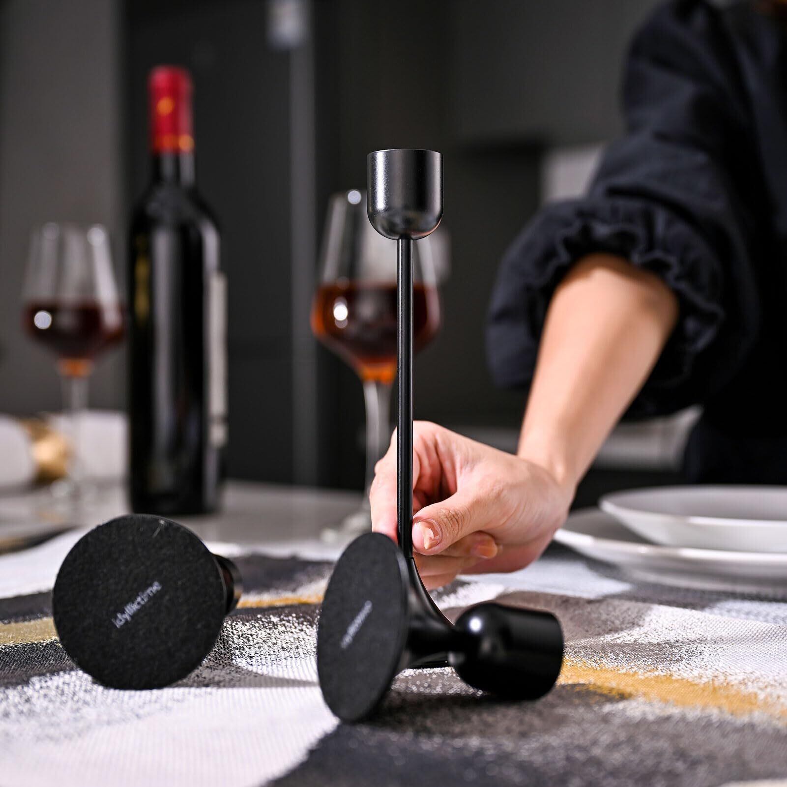 重みのある滑り止めの安定したベース:idyllictime 燭台ホルダーには重みのある固体金属ベースがあり、より安定しており、揺れにくいです。 滑り止めの底部シリコンパッドはデスクトップとの摩擦を増加させることができ、テーブルを傷つけません。 電気メッキプロセスにより、何年も使用しても新品同様の外観になります。 錆びや腐食がありません。