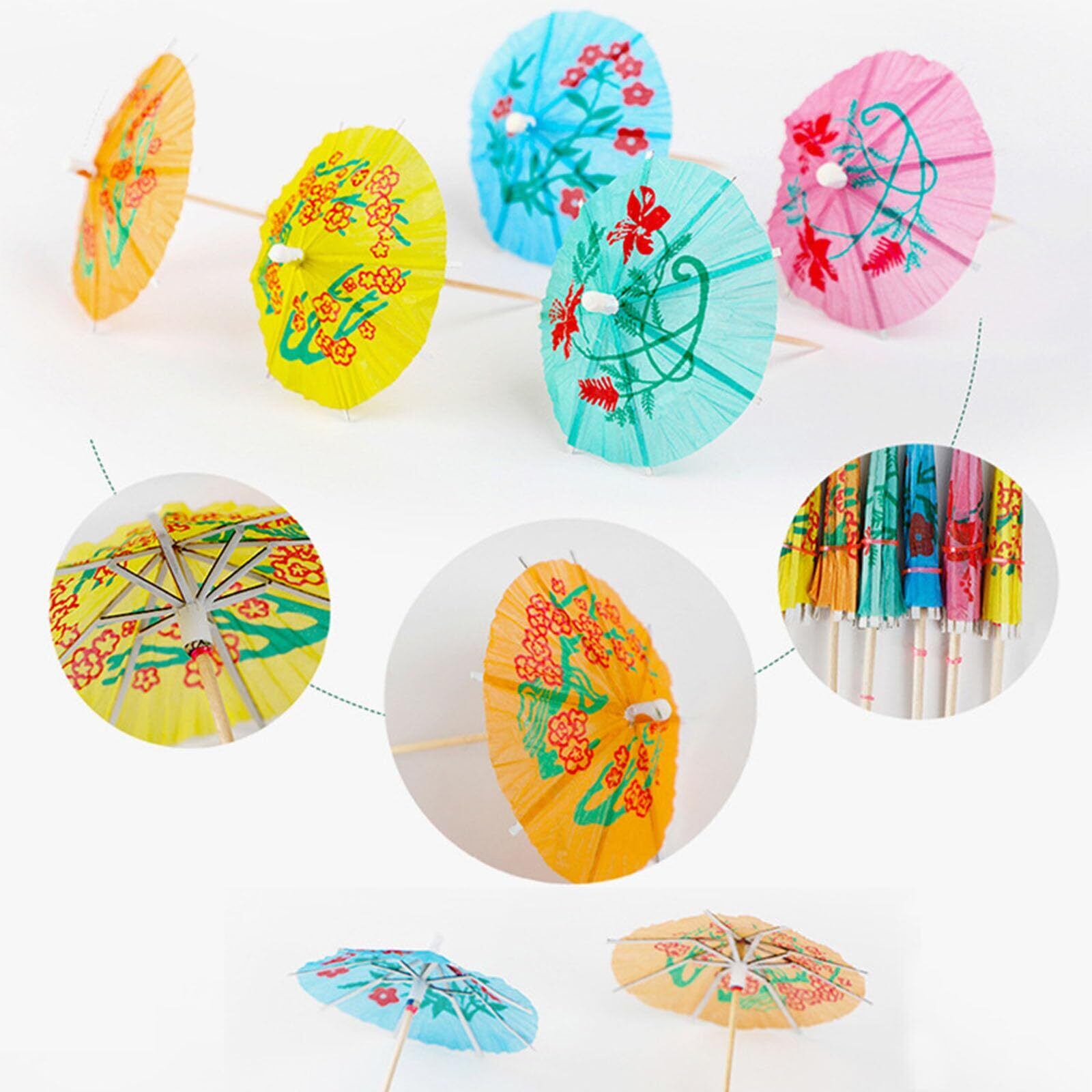 デコレーション:キュートで小さな紙のカクテル傘デザイン、鮮やかな色合い、お料理を更に一層輝かせてくれる、飲み物やテーブルデコレーションに最適。