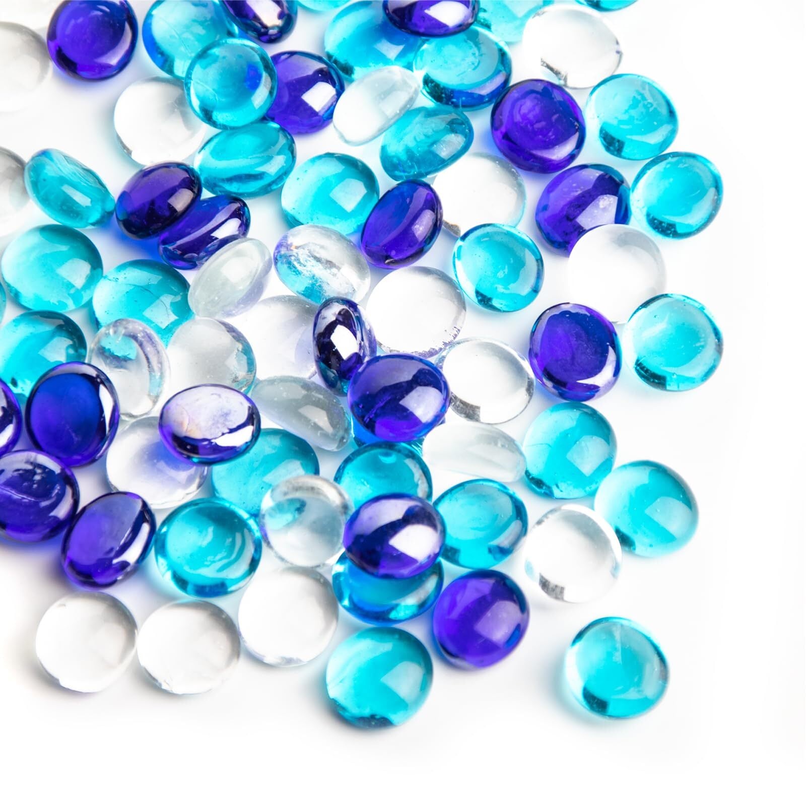 【特価セール】440g ブルー ミックスカラー ガラスビー玉 ミニフラットガラスビーズ ~ 150個 花瓶フィラー用 花底 マンカラ 宝石 小石 水槽用岩 テーブル水槽用 ホームデコレーション アートクラフト用品 (1.3~1.8CM) Mixed Blue | paghag