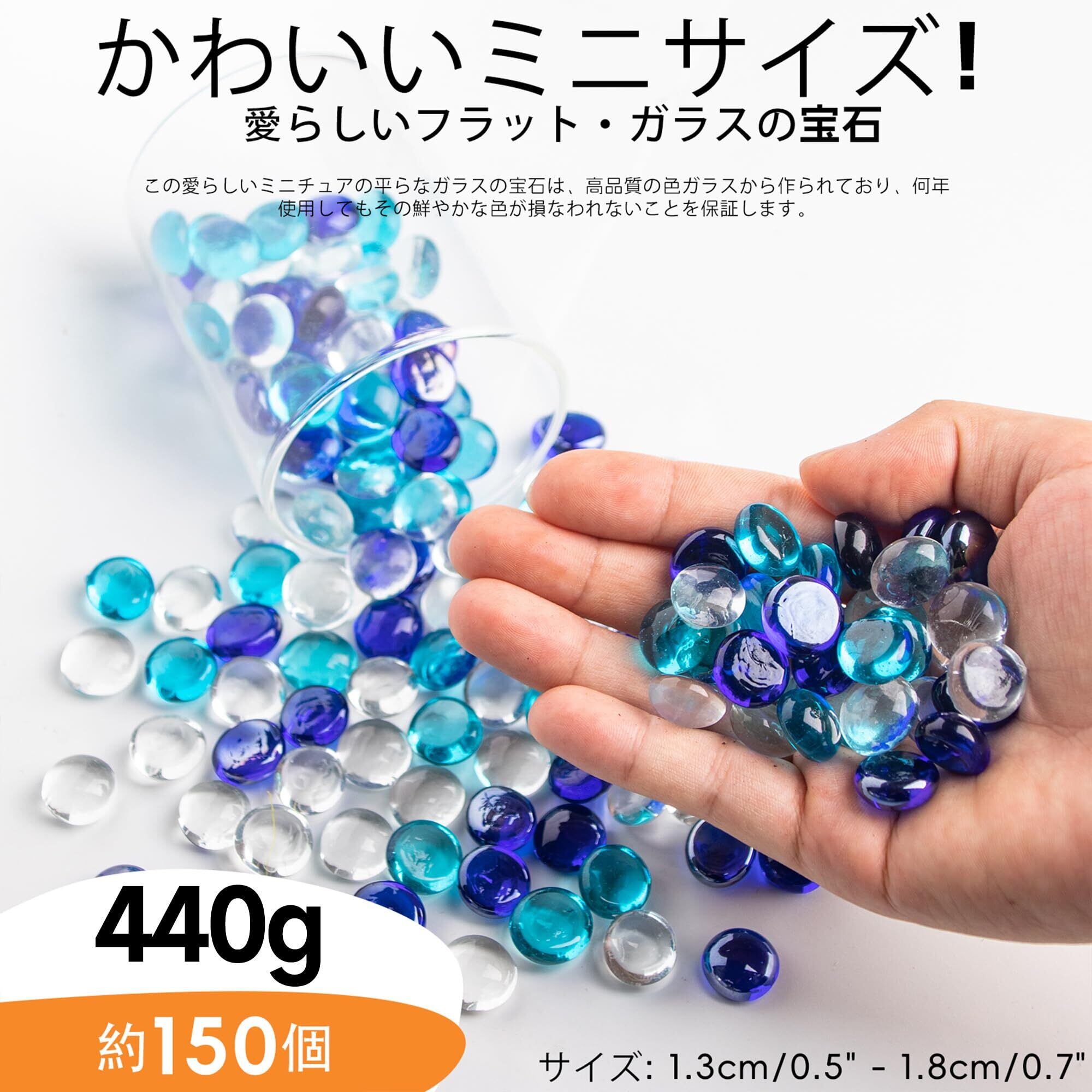 440g ブルー ミックスカラー ガラスビー玉 ミニフラットガラスビーズ ~ 150個 花瓶フィラー用 花底 マンカラ 宝石 小石 水槽用岩 テーブル水槽用 ホームデコレーション アートクラフト用品 (1.3~1.8CM) Mixed Blue